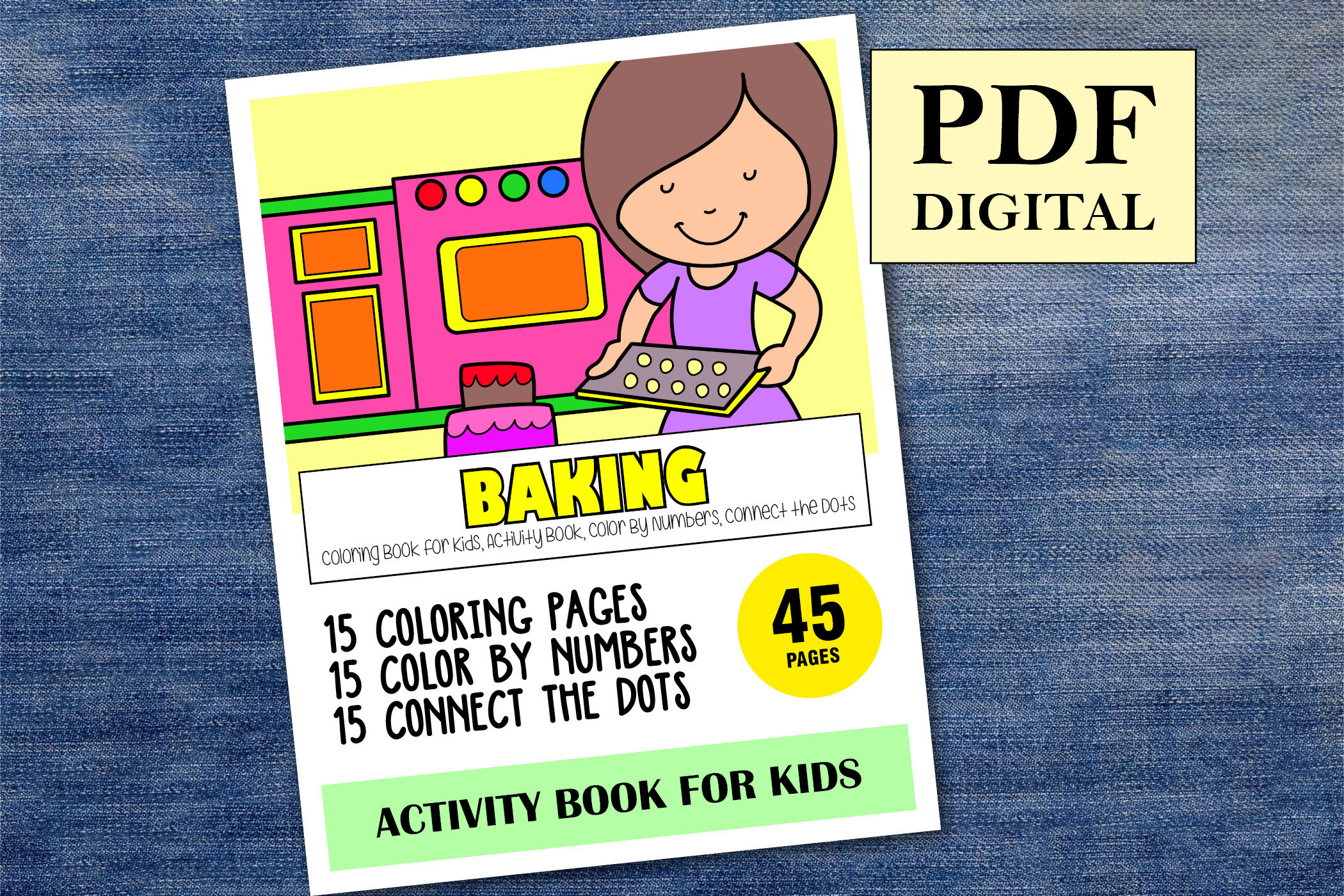 Your kids are going to love this Baking Activity Book with 45 pages of various activities to keep your child engaged and entertained for hours.