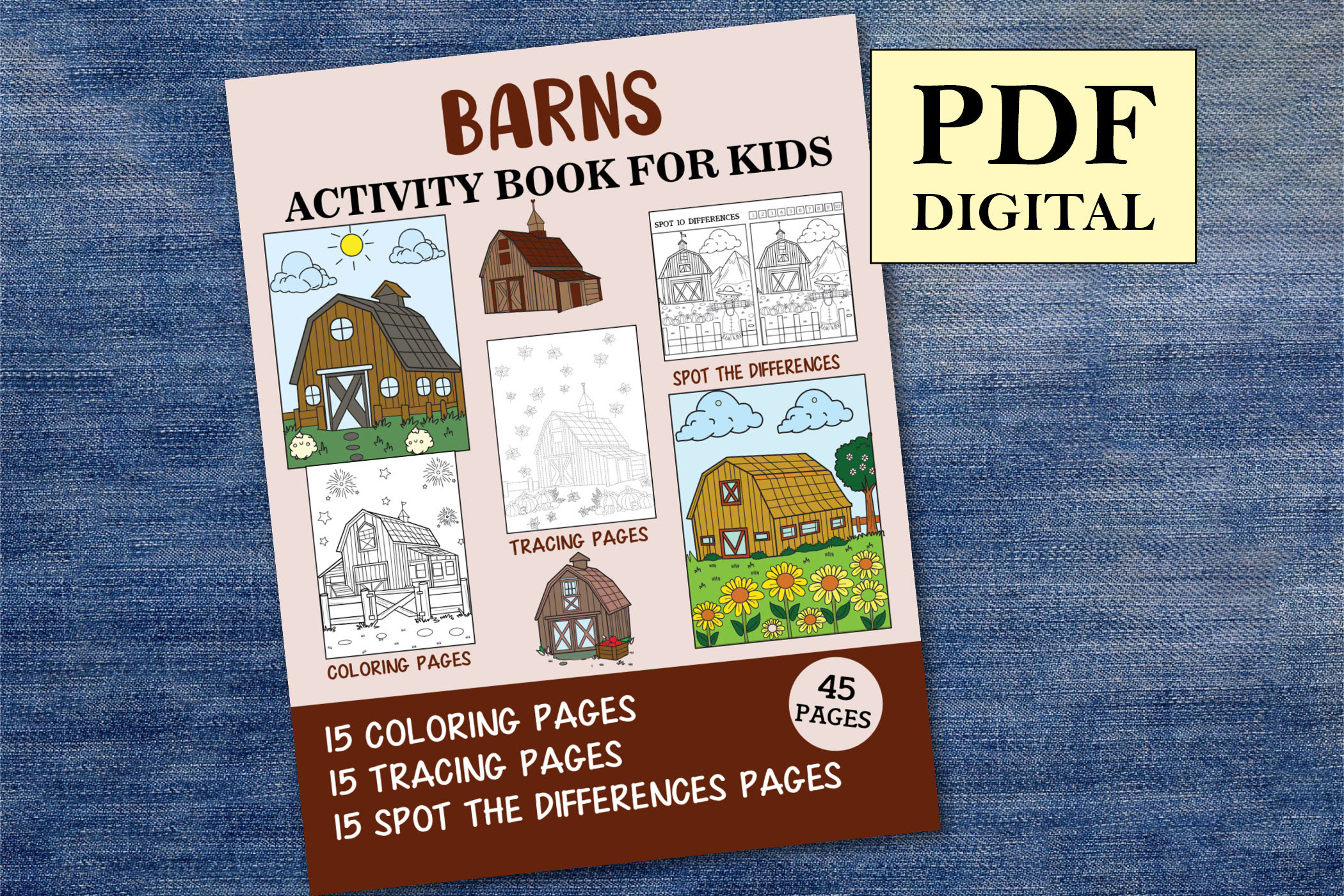 Barns Activity Book for Kids - Coloring, Tracing and Spot the Difference Pages