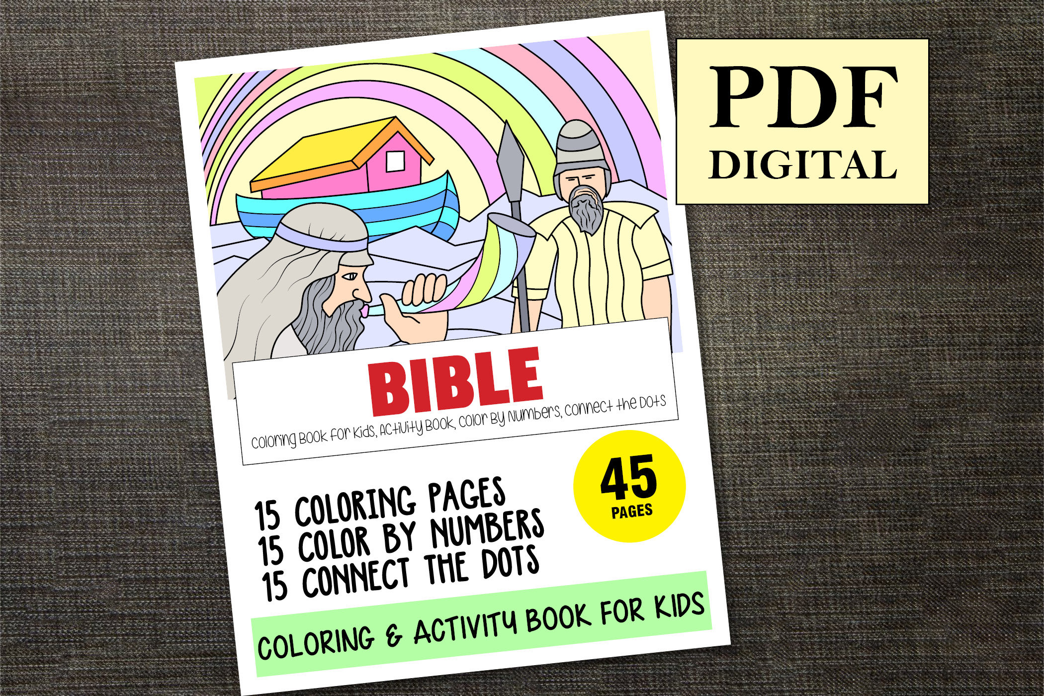 Bible Activity Book for Kids - Coloring, Connect the Dots, and Color By Numbers Pages