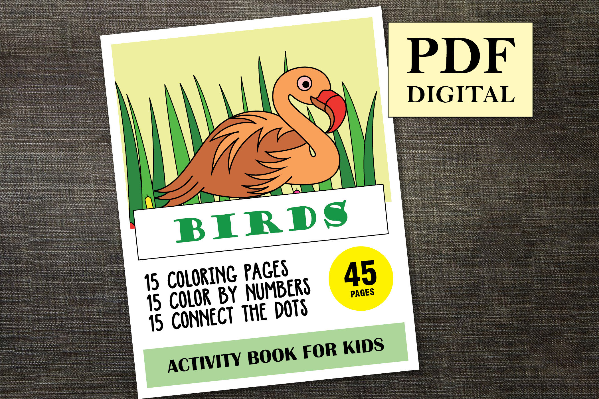 Birds Activity Book for Kids - Coloring, Connect the Dots, and Color By Numbers Pages