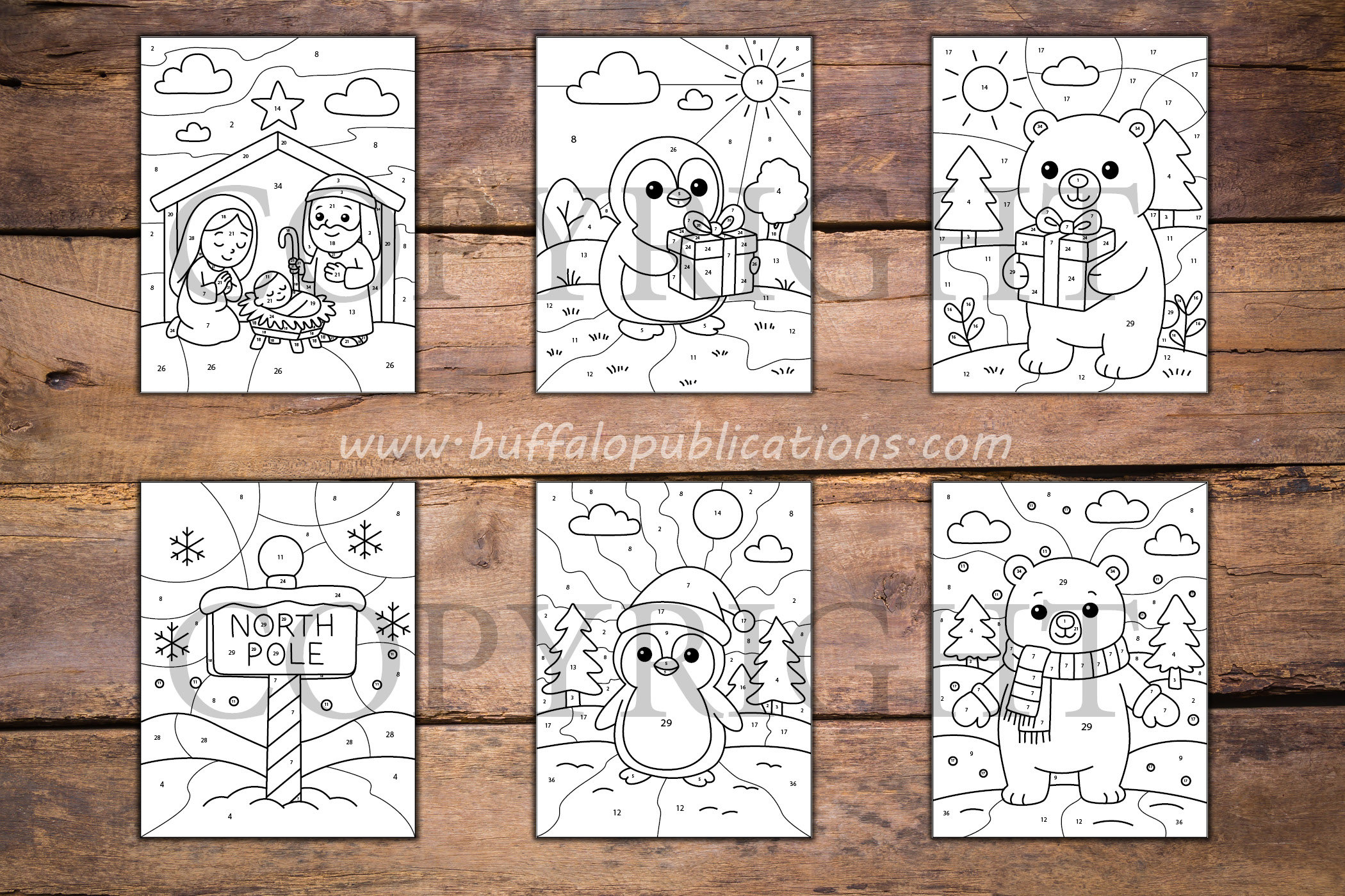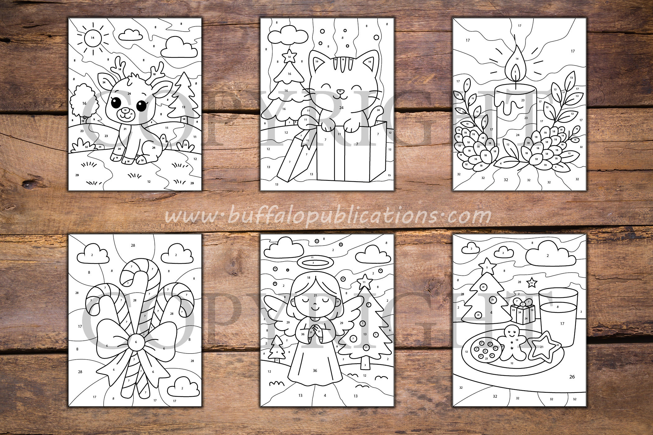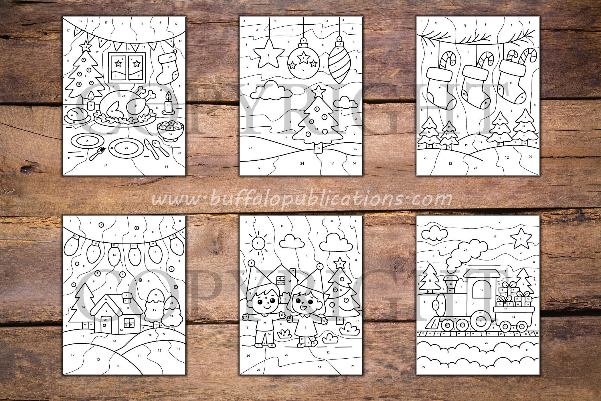 Your kids are going to love this Christmas Coloring Book with 50 Color By Number pages to keep your child engaged and entertained for hours.