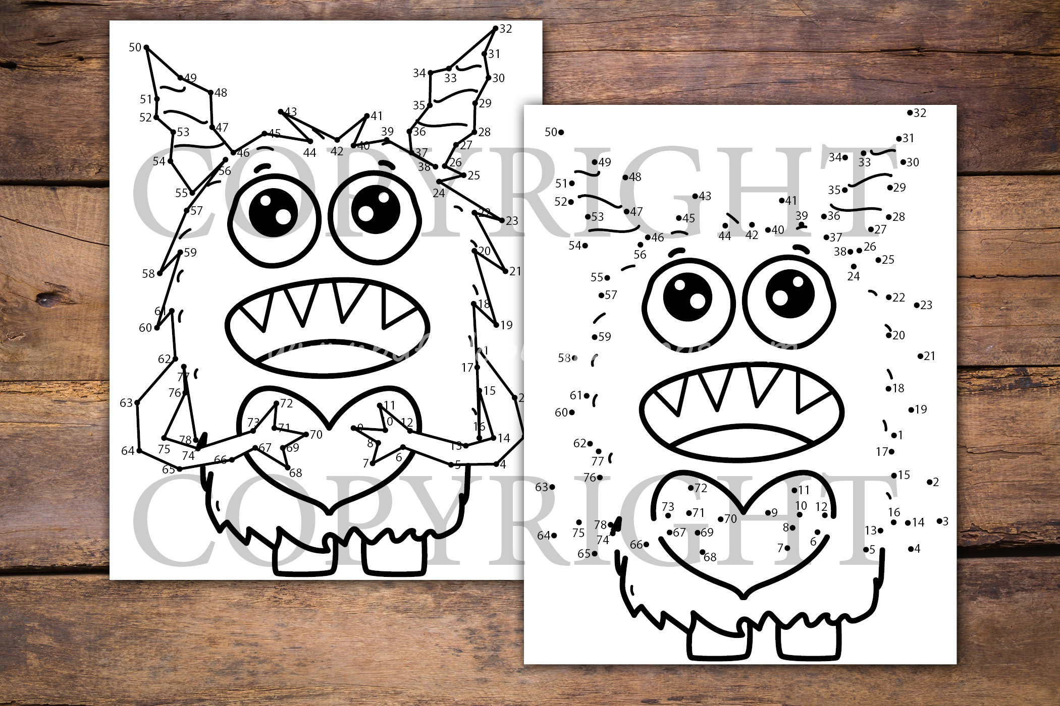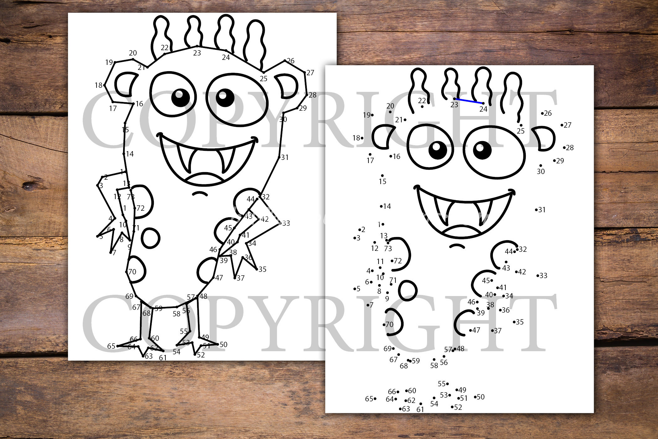 This Cute Monsters Dot to Dot Book contains 60 Dot Puzzles for kids, each page is uniquely crafted to be suitable for kids of all age groups.