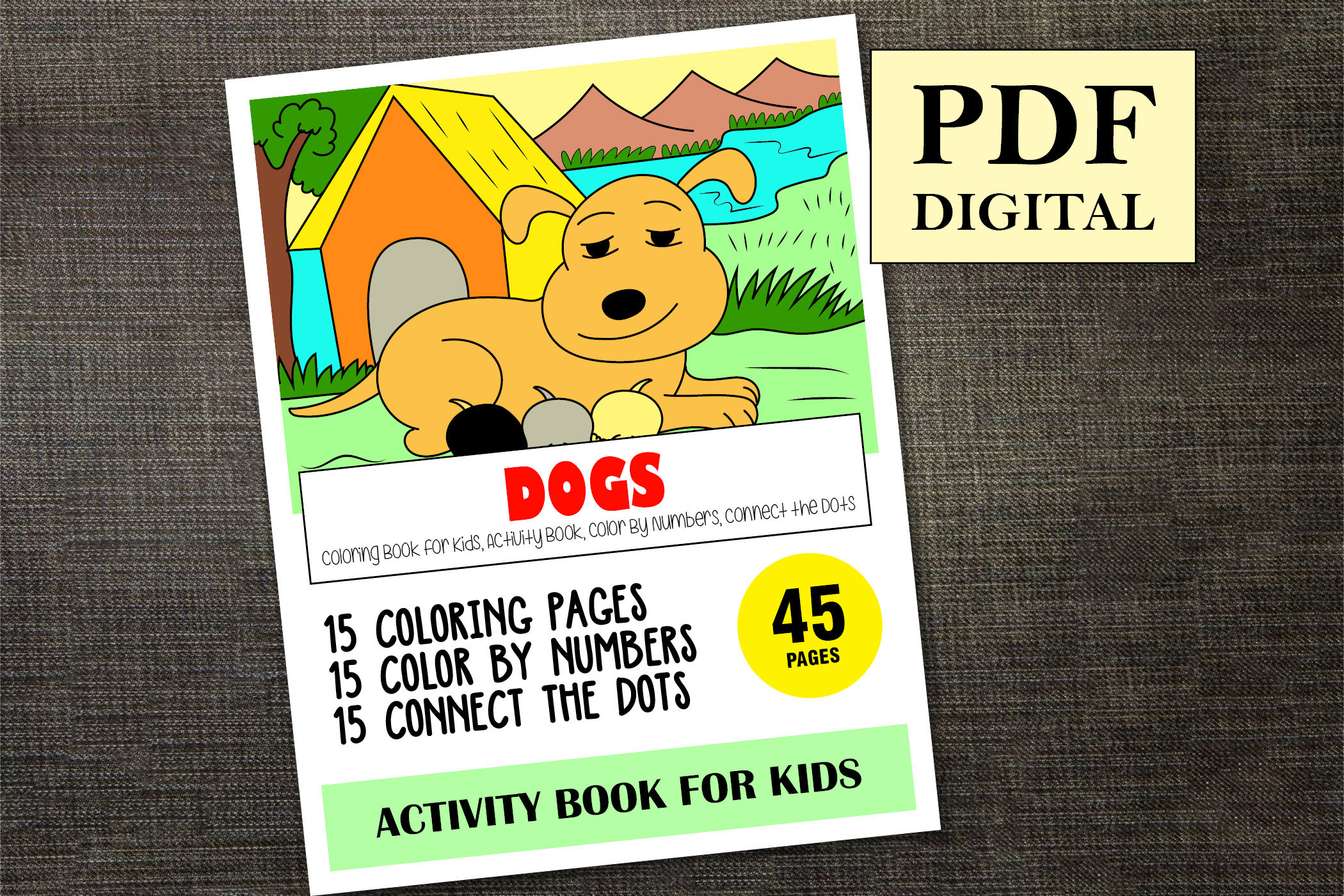 Your kids are going to love this Dogs Activity Book with 45 pages of various activities to keep your child engaged and entertained for hours.