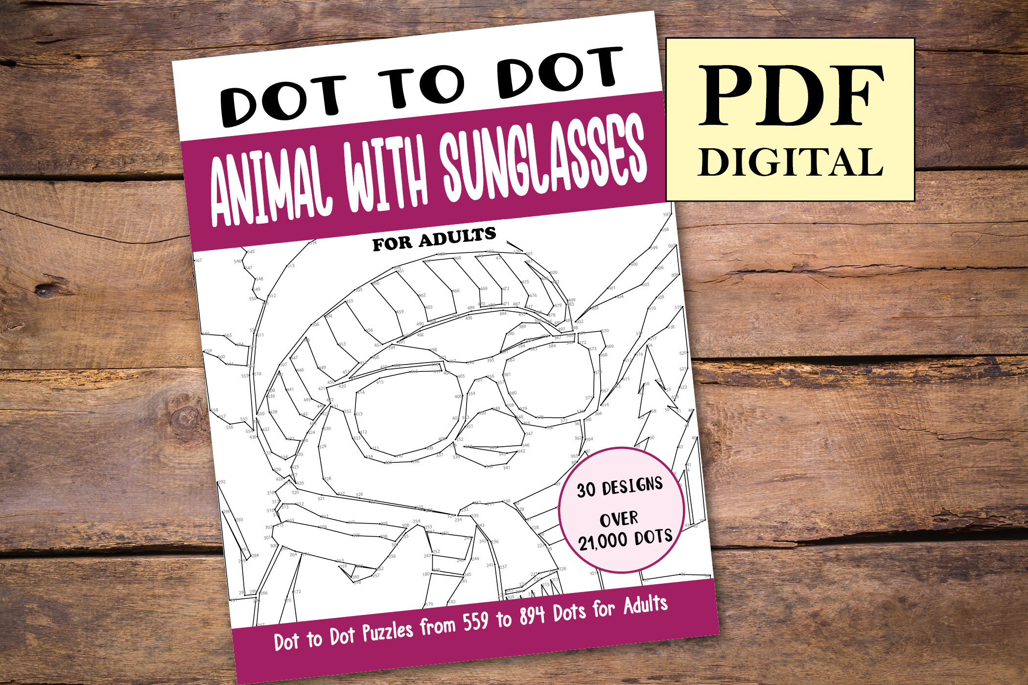 Animals with Sunglasses Dot to Dot Book for Adults with over 21000 dots. This book contains 30 Unique Animals with Sunglasses Dot to Dot Pages.