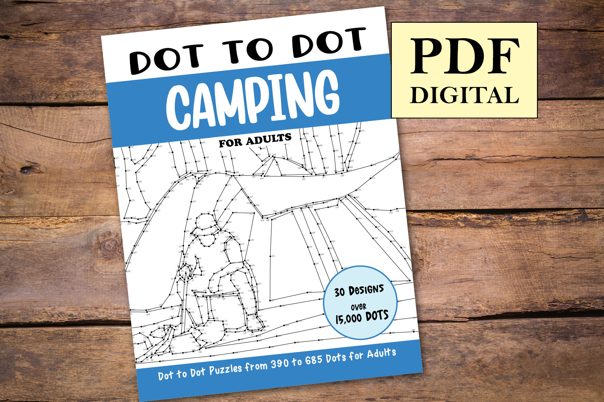 Camping Dot to Dot Book for Adults with over 15000 dots. This book contains 30 Unique Camping Dot to Dot Pages.