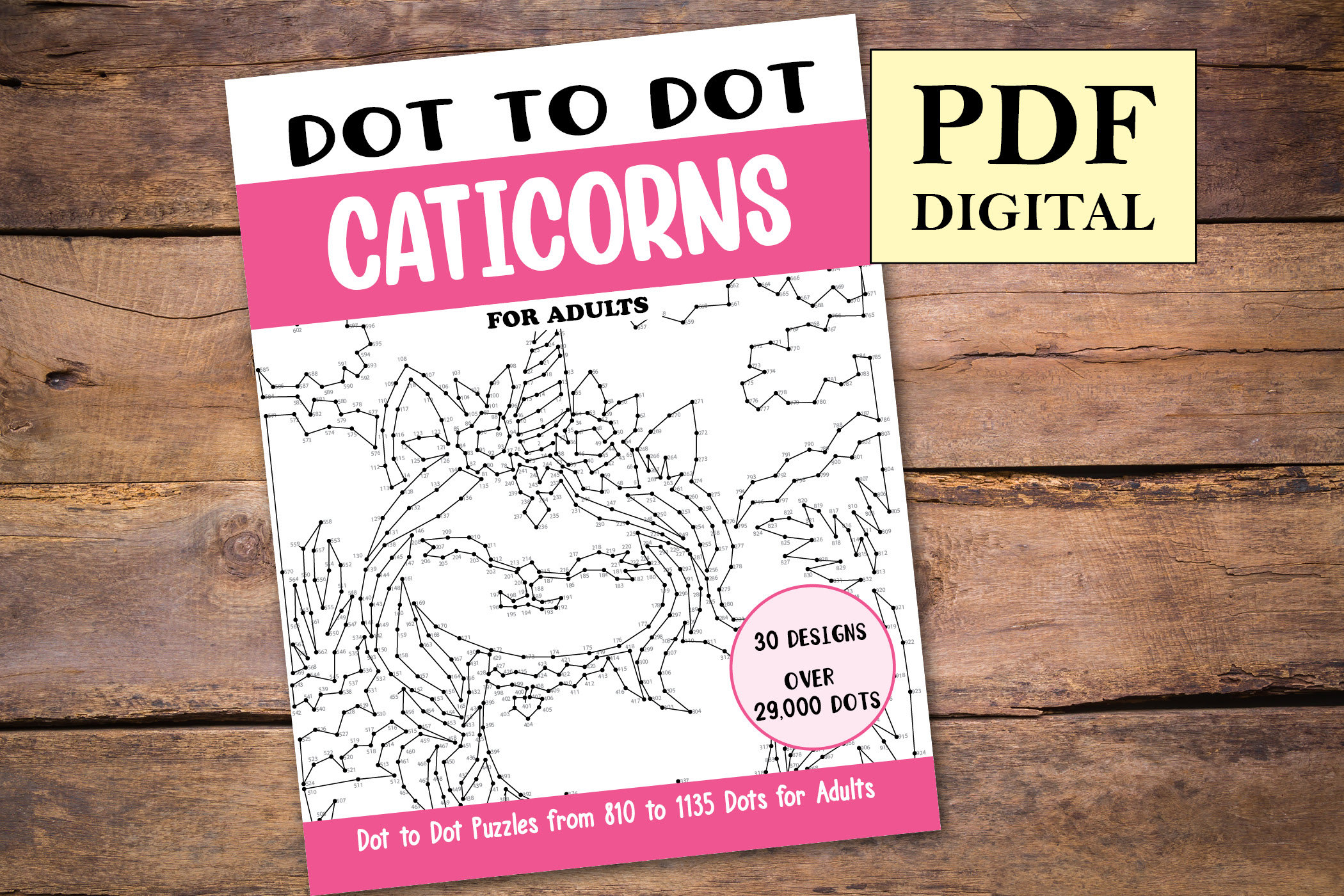Caticorns Dot to Dot Book for Adults with over 29000 dots. This book contains 30 Unique Caticorns Dot to Dot Pages.