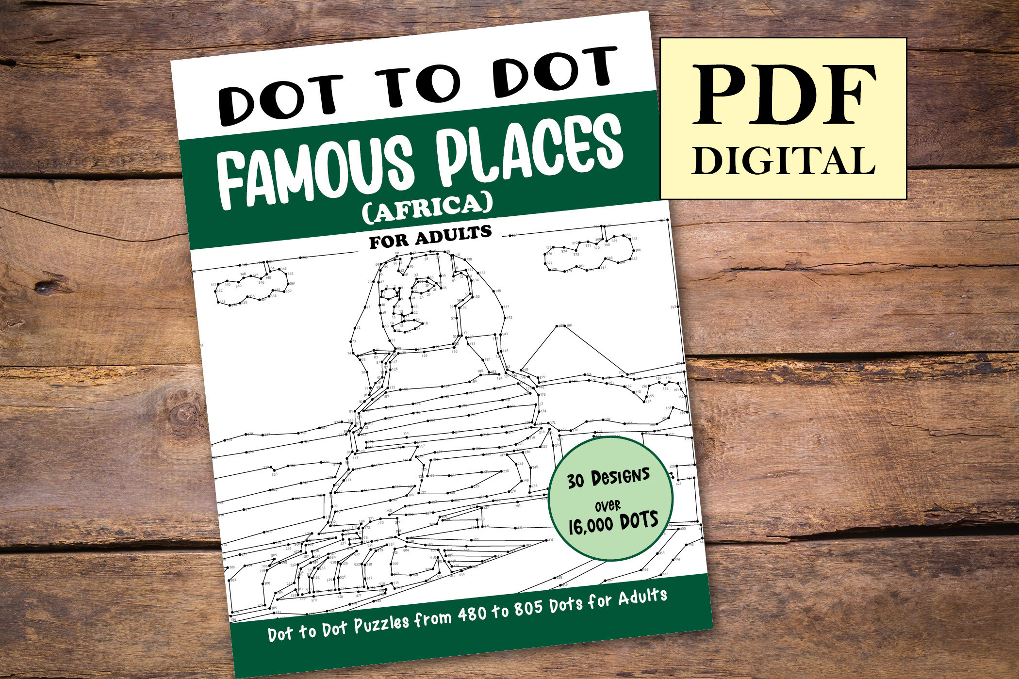 Famous Places (Africa) Dot to Dot Book for Adults with over 16000 dots. This book contains 30 Unique Famous Places (Africa) Dot to Dot Pages.