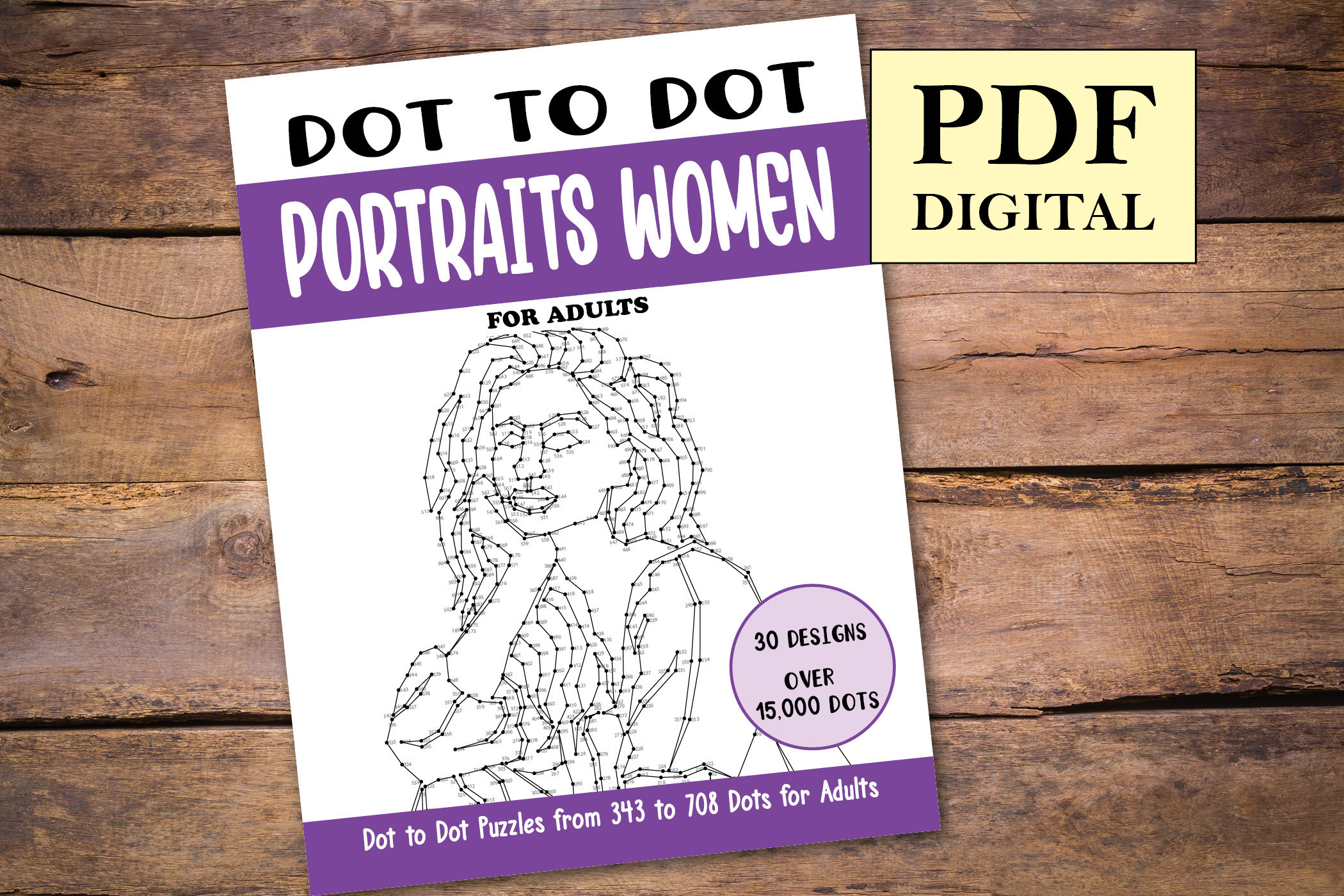 Portraits Women Dot to Dot Book for Adults with over 15000 dots. This book contains 30 Unique Portraits Women Dot to Dot Pages.