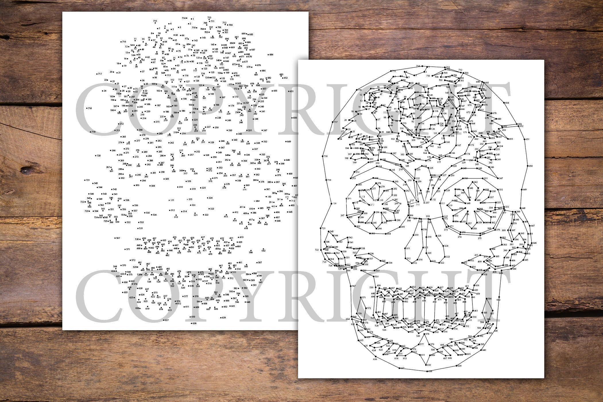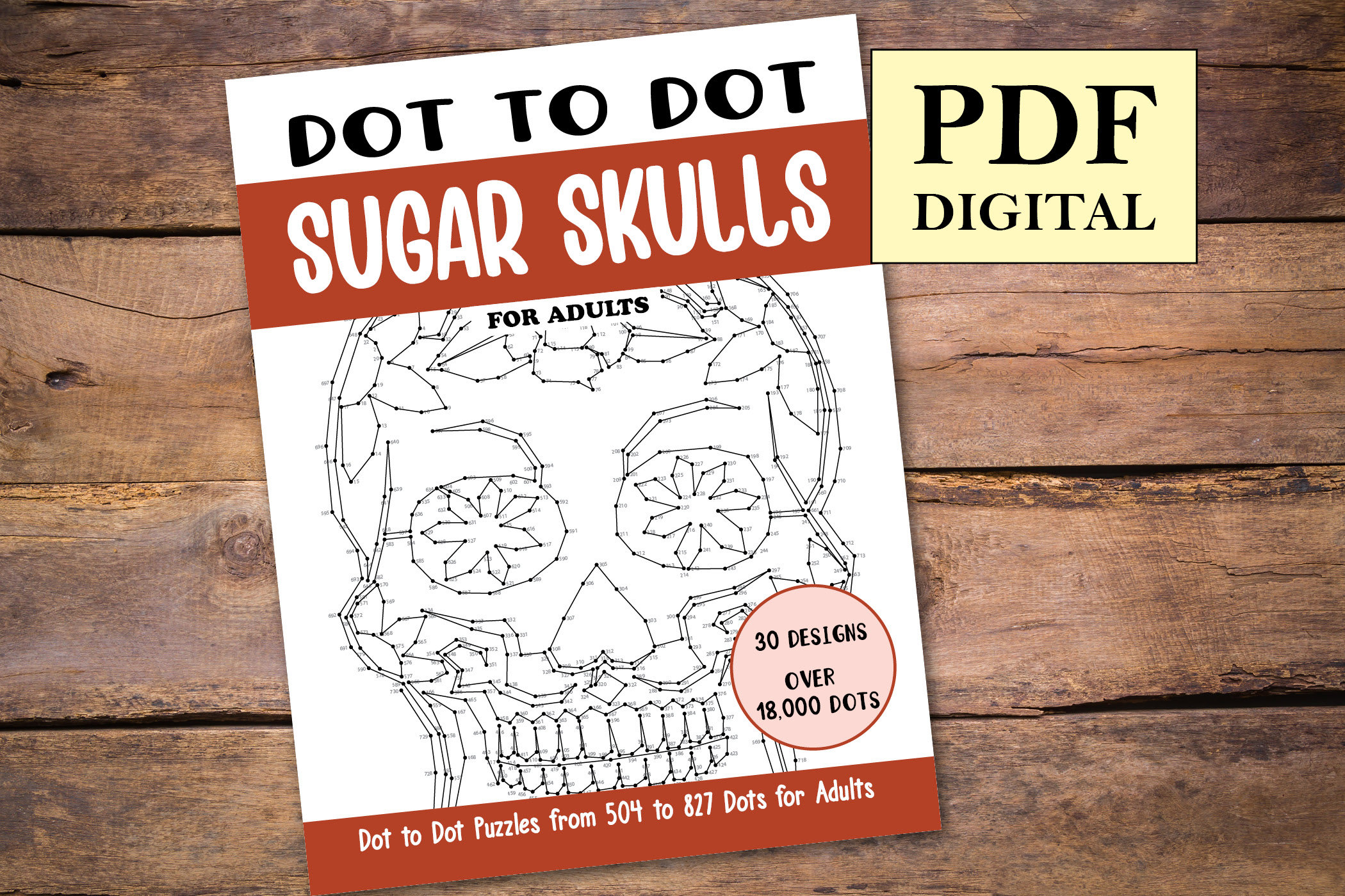 Sugar Skulls Dot to Dot Book for Adults with over 18000 dots. This book contains 30 Unique Sugar Skulls Dot to Dot Pages.