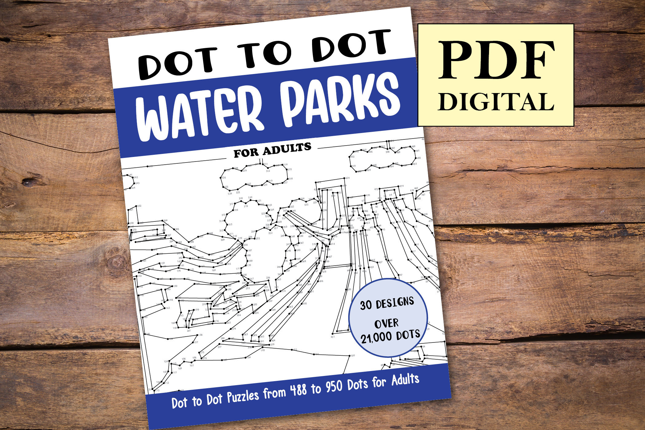 Water Parks Dot to Dot Book for Adults with over 21000 dots. This book contains 30 Unique Water Parks Dot to Dot Pages.