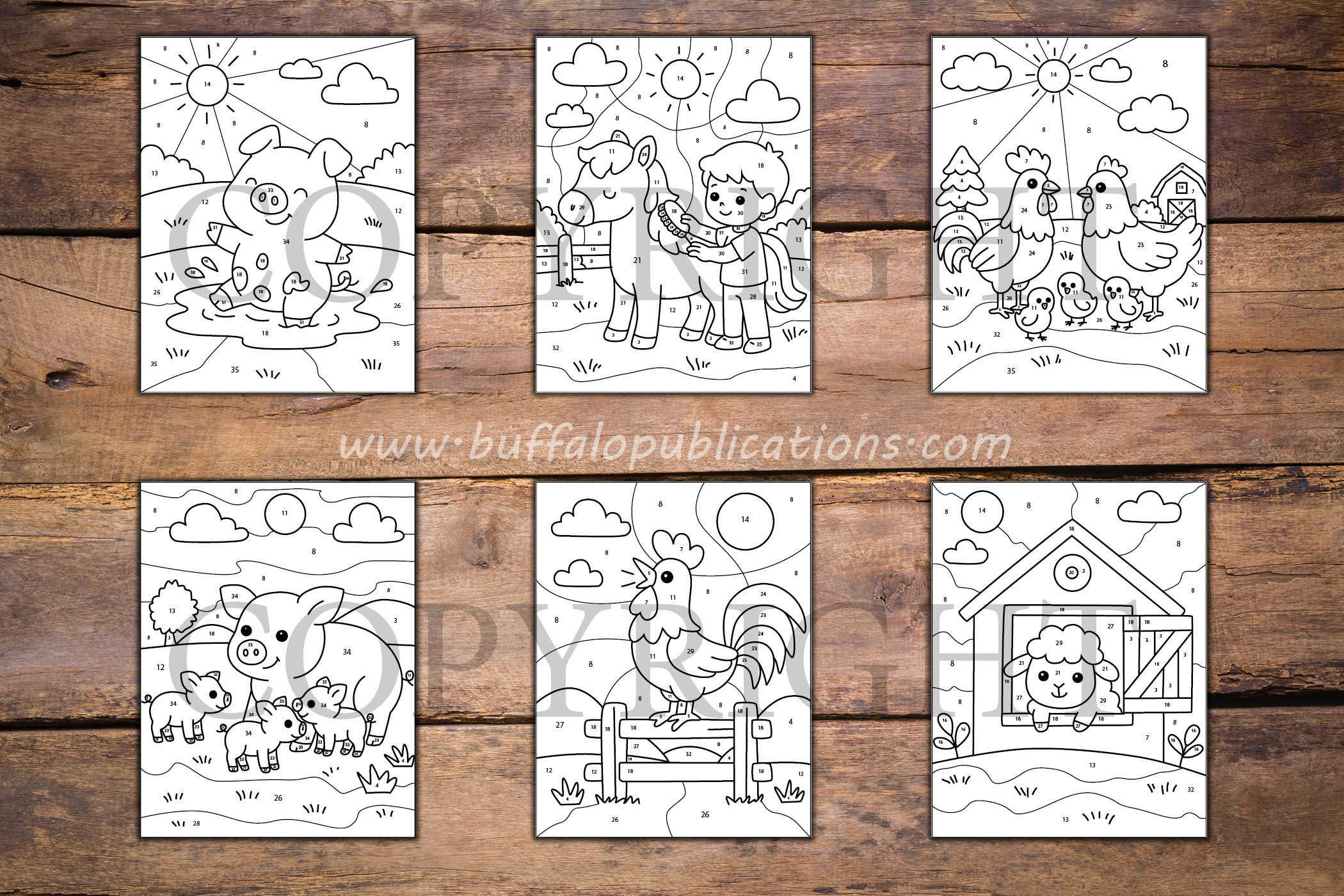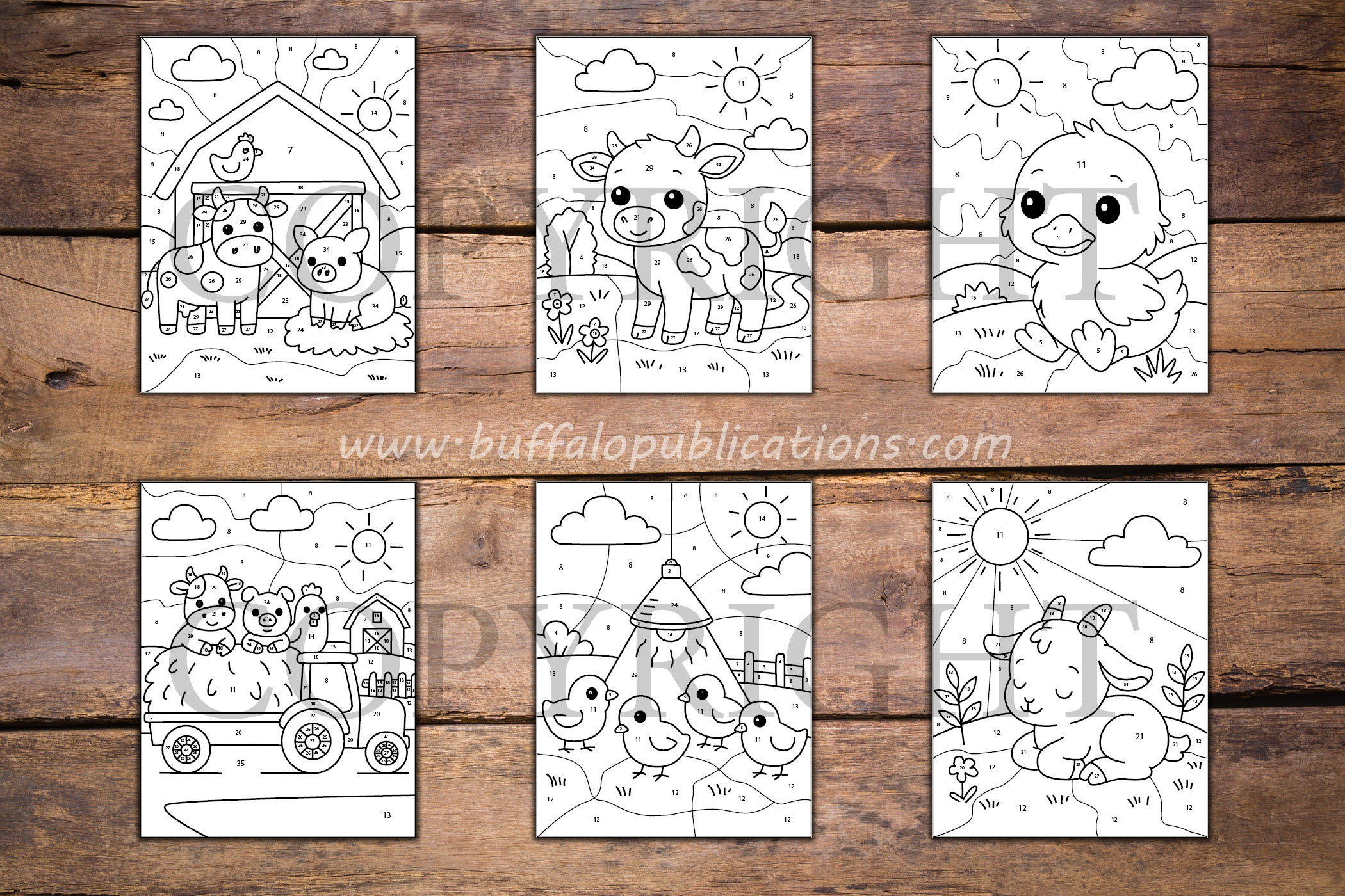 Your kids are going to love this Farm Animals Coloring Book with 50 Color By Number pages to keep your child engaged and entertained for hours.