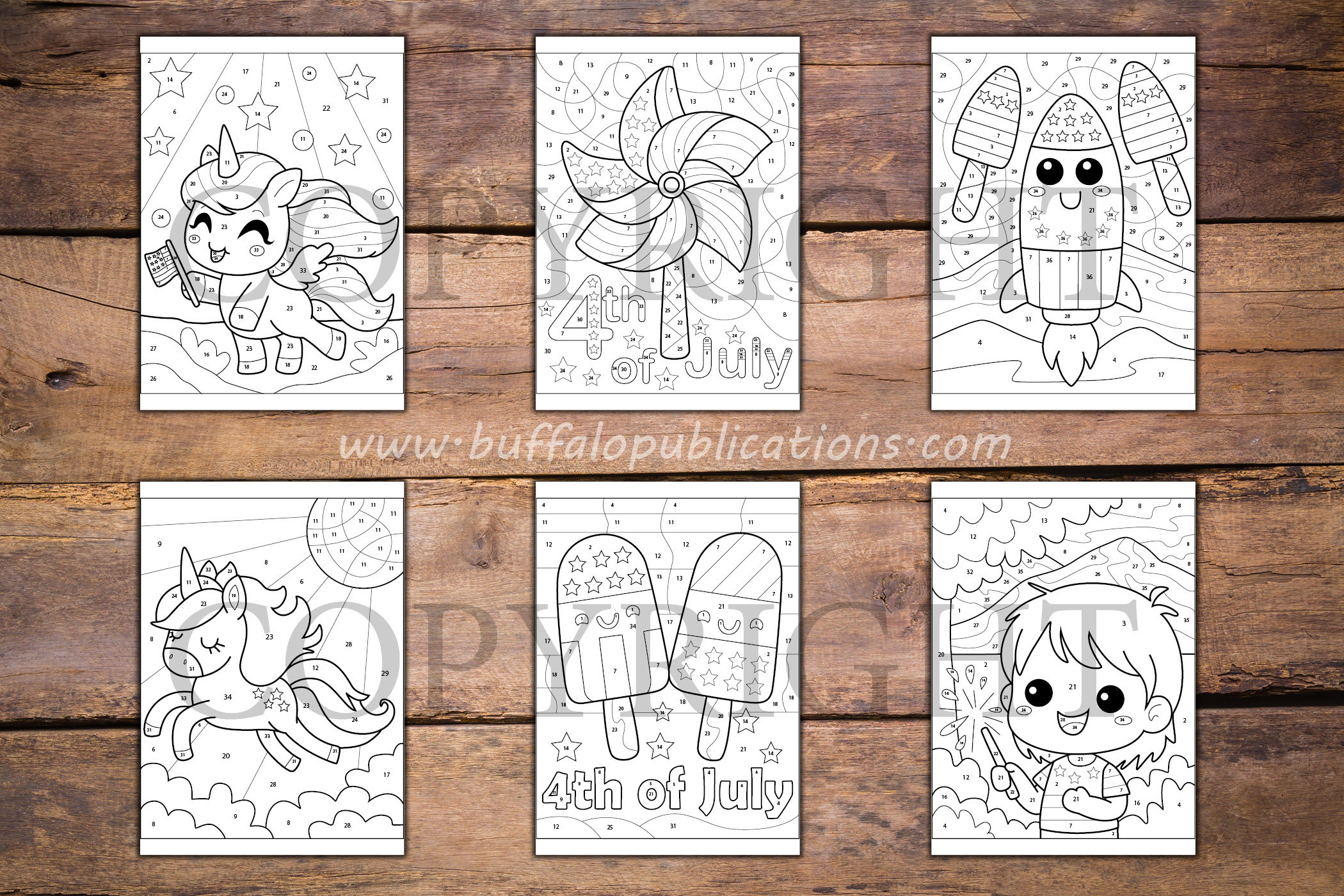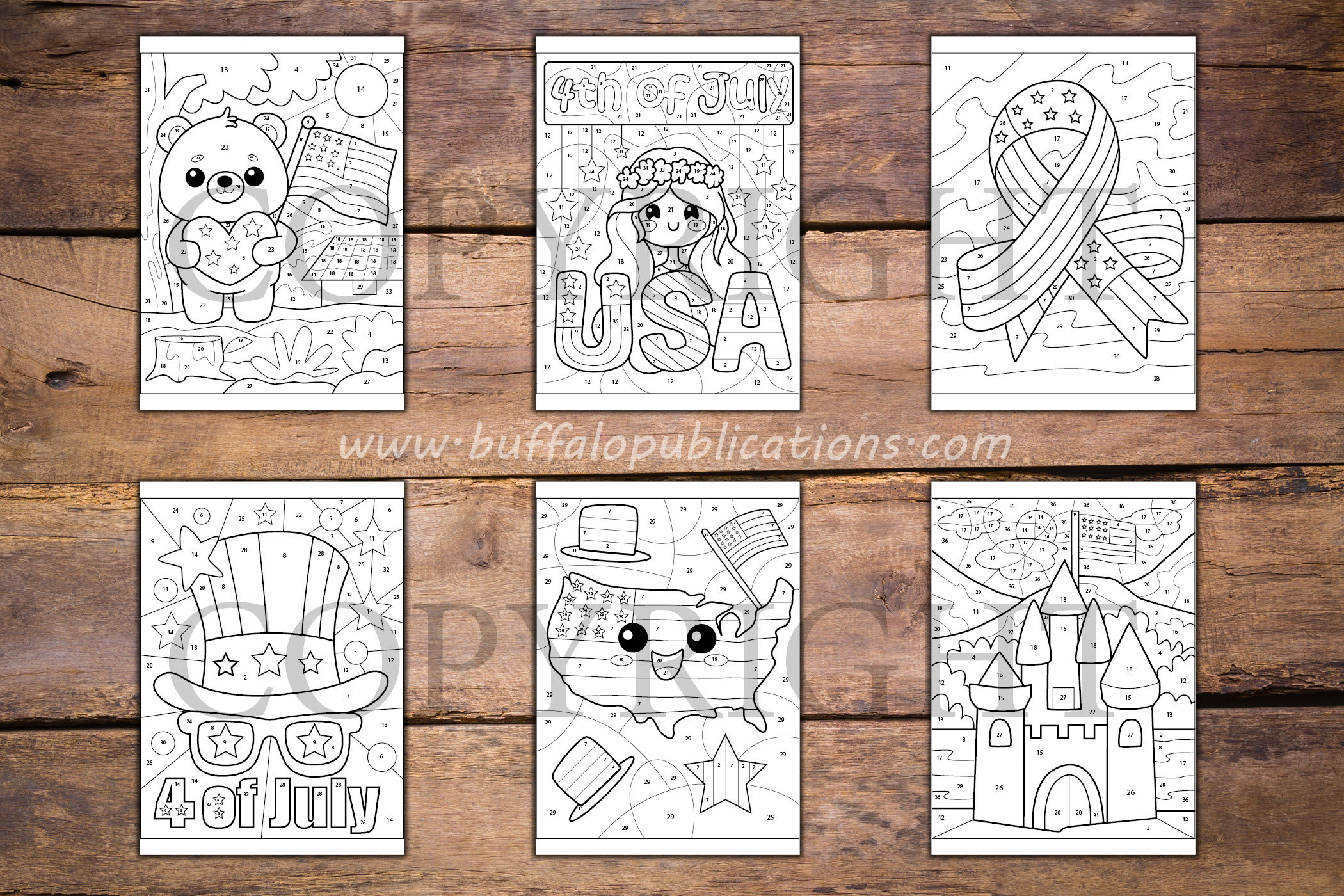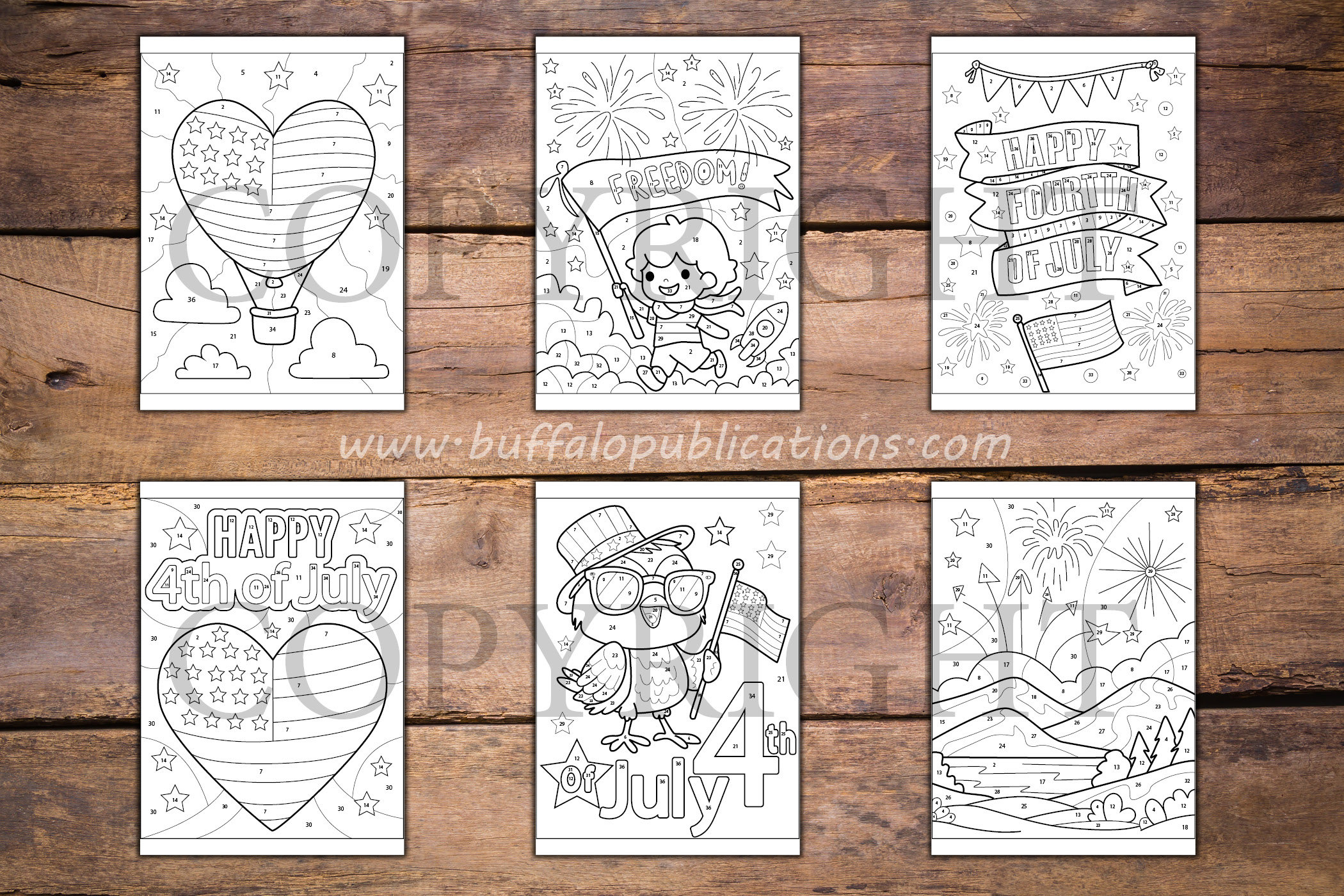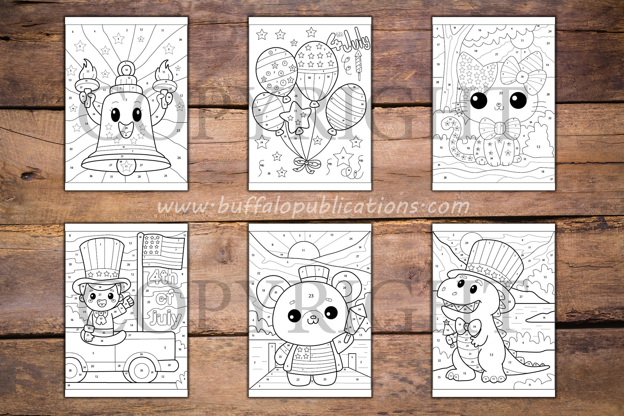 Your kids are going to love this Fourth of July Coloring Book with 50 Color By Number pages to keep your child engaged and entertained for hours.