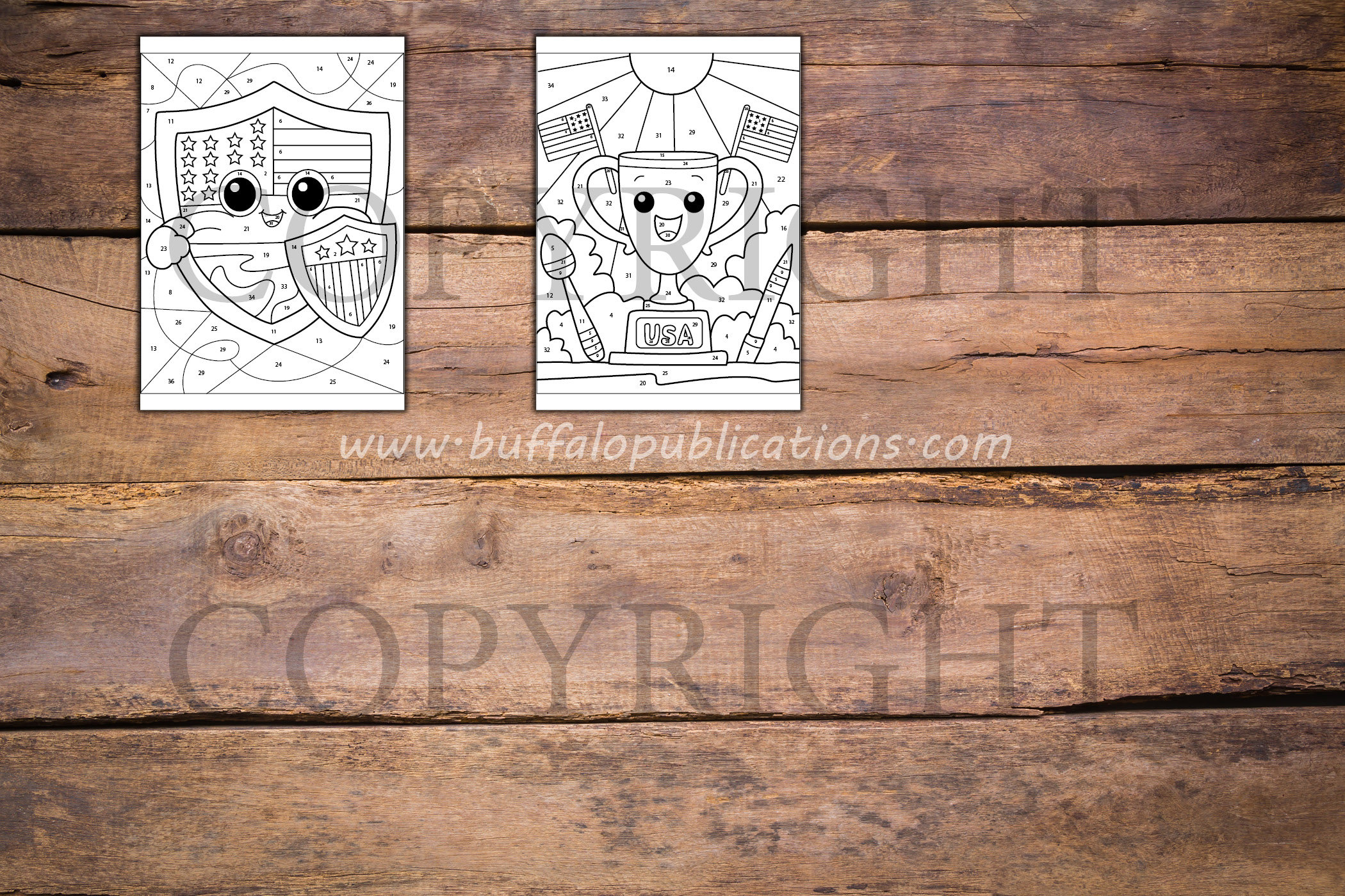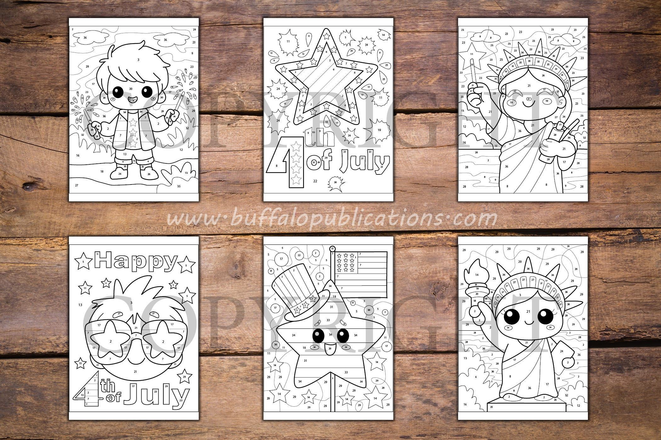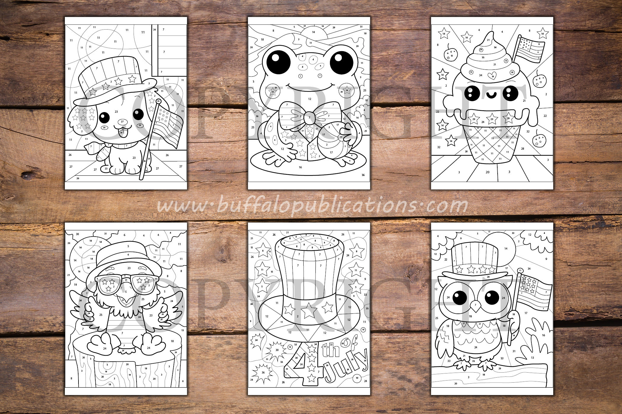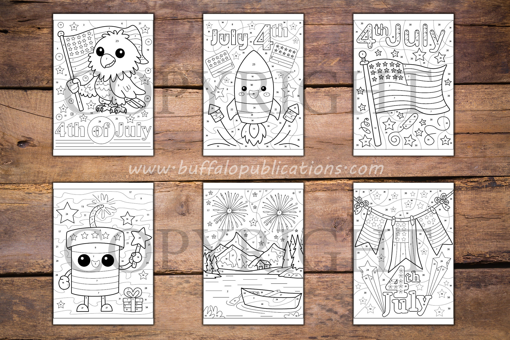 Your kids are going to love this Fourth of July Coloring Book with 50 Color By Number pages to keep your child engaged and entertained for hours.