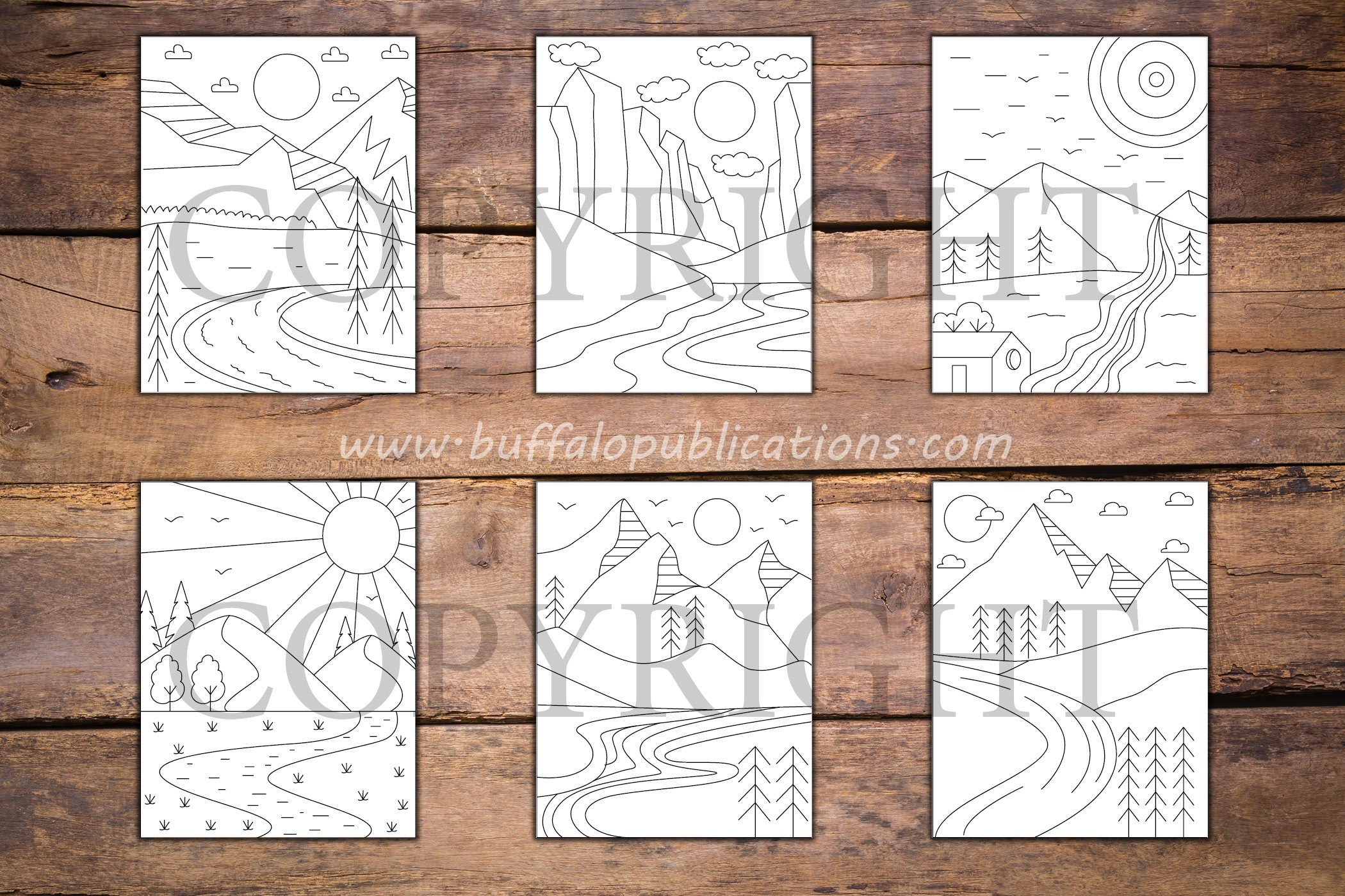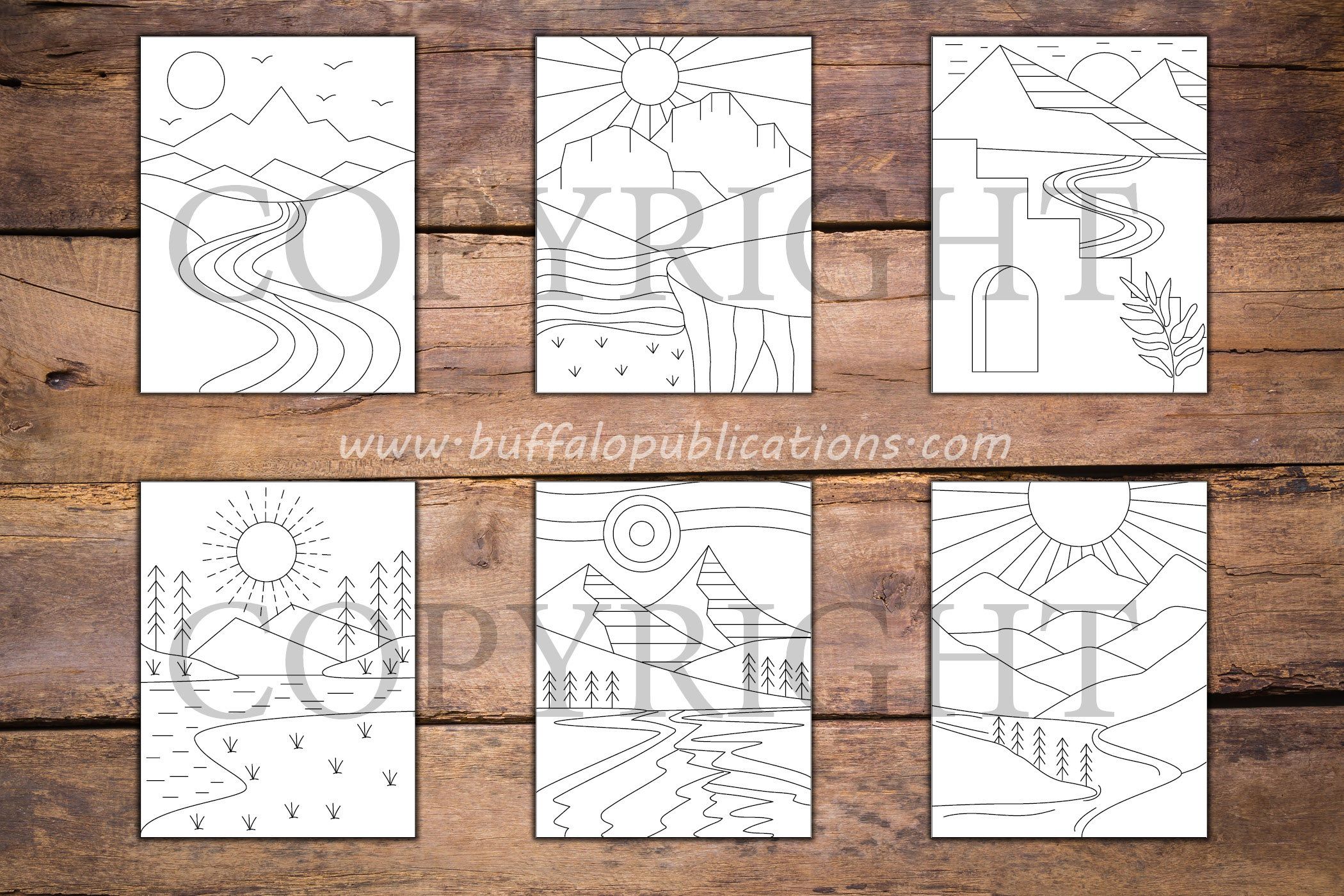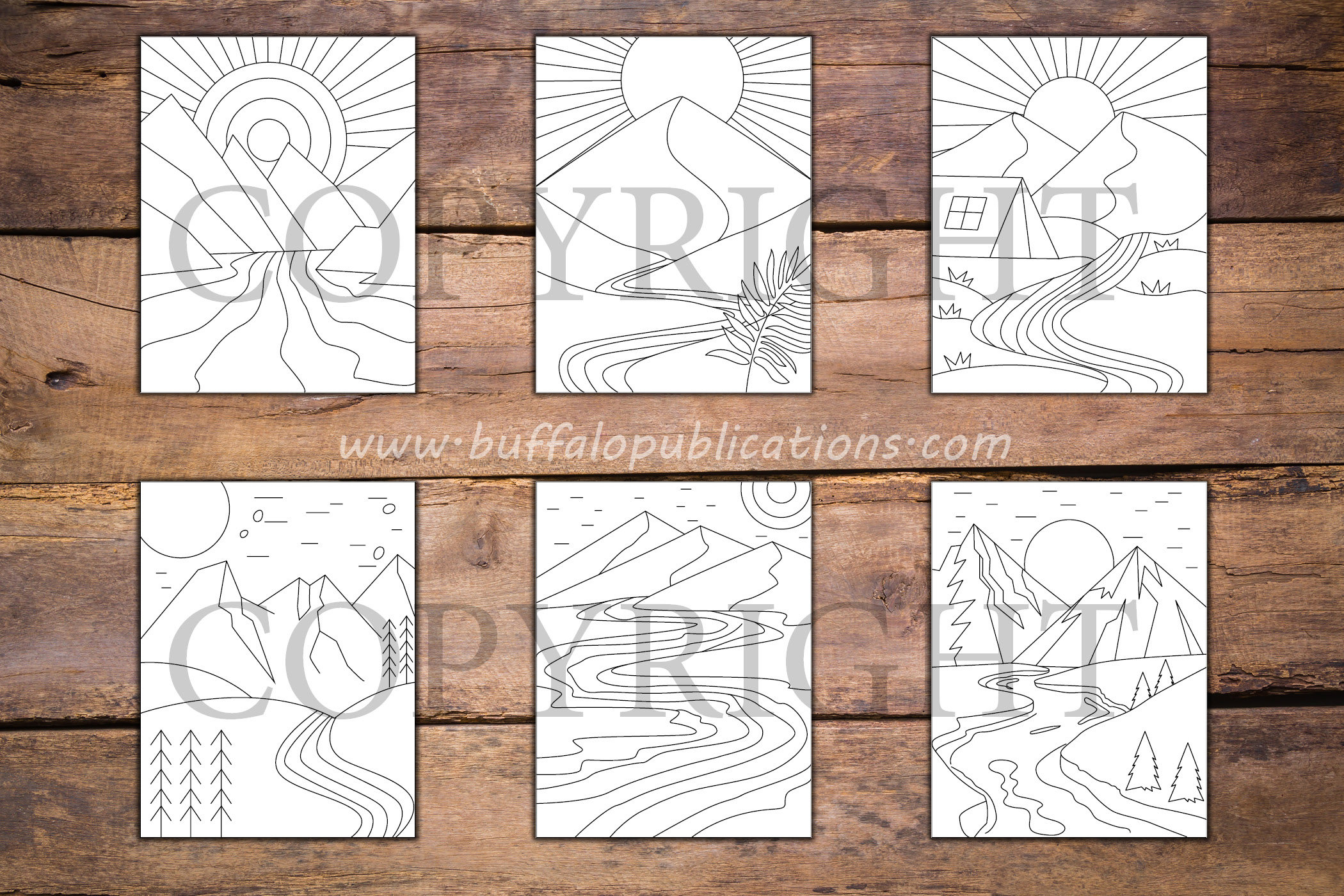 Minimalist Mountains and Rivers Coloring Book