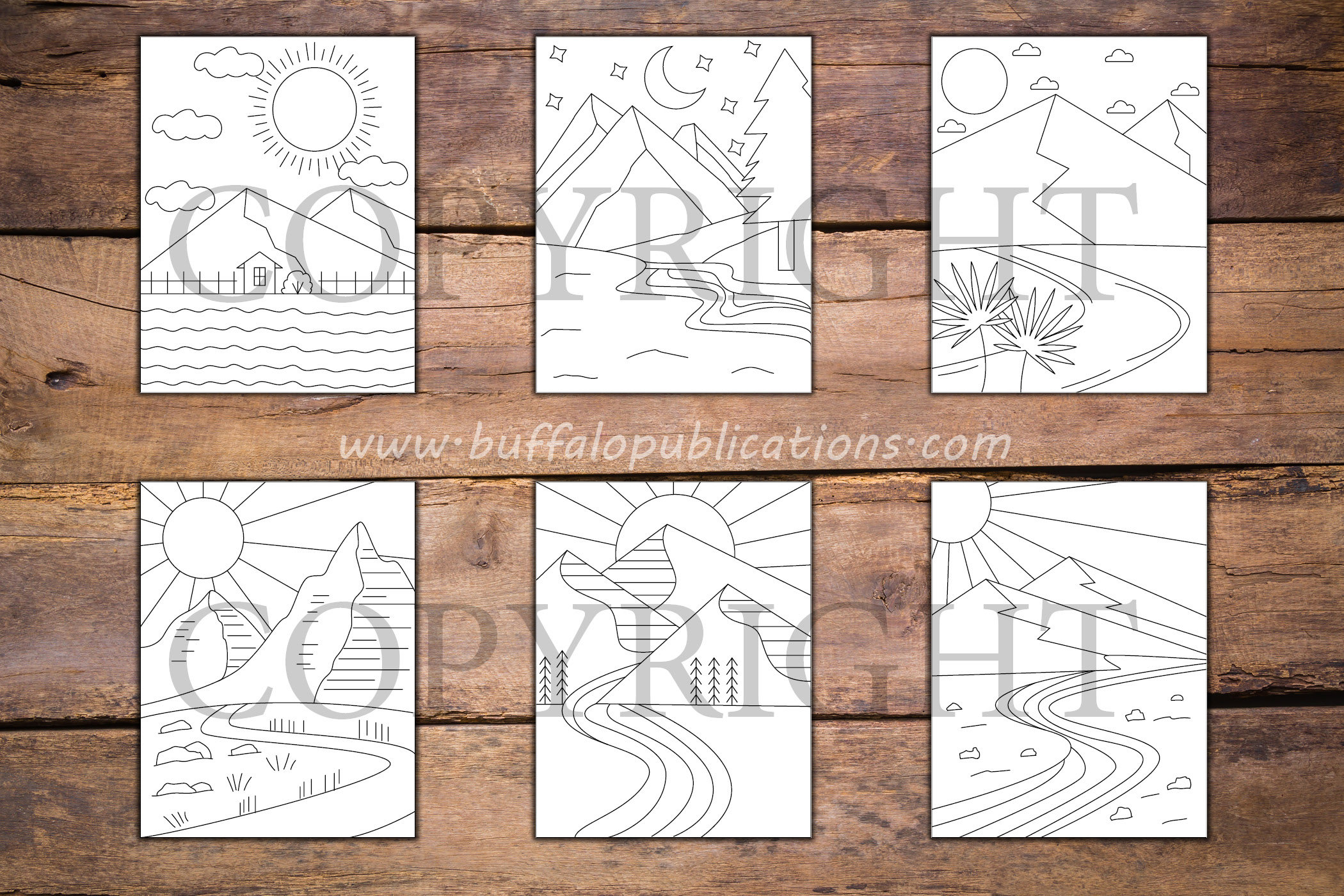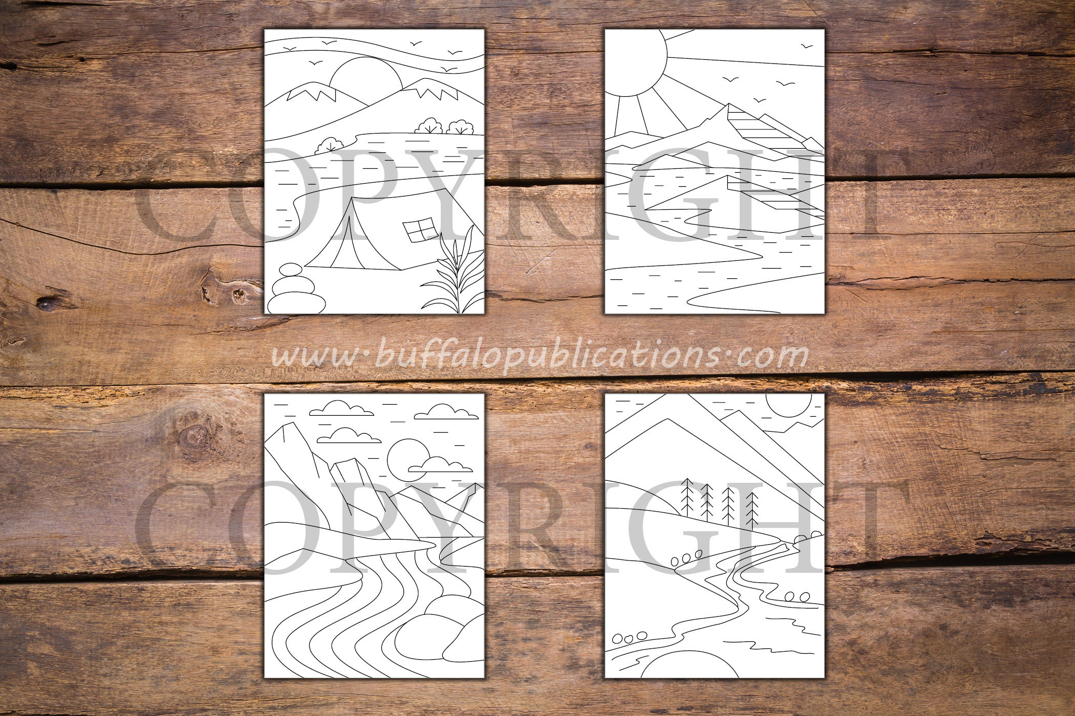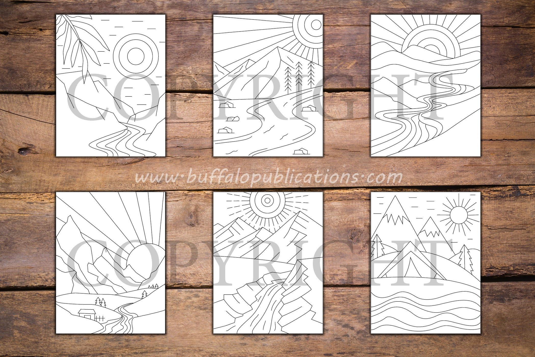 Minimalist Mountains and Rivers Coloring Book