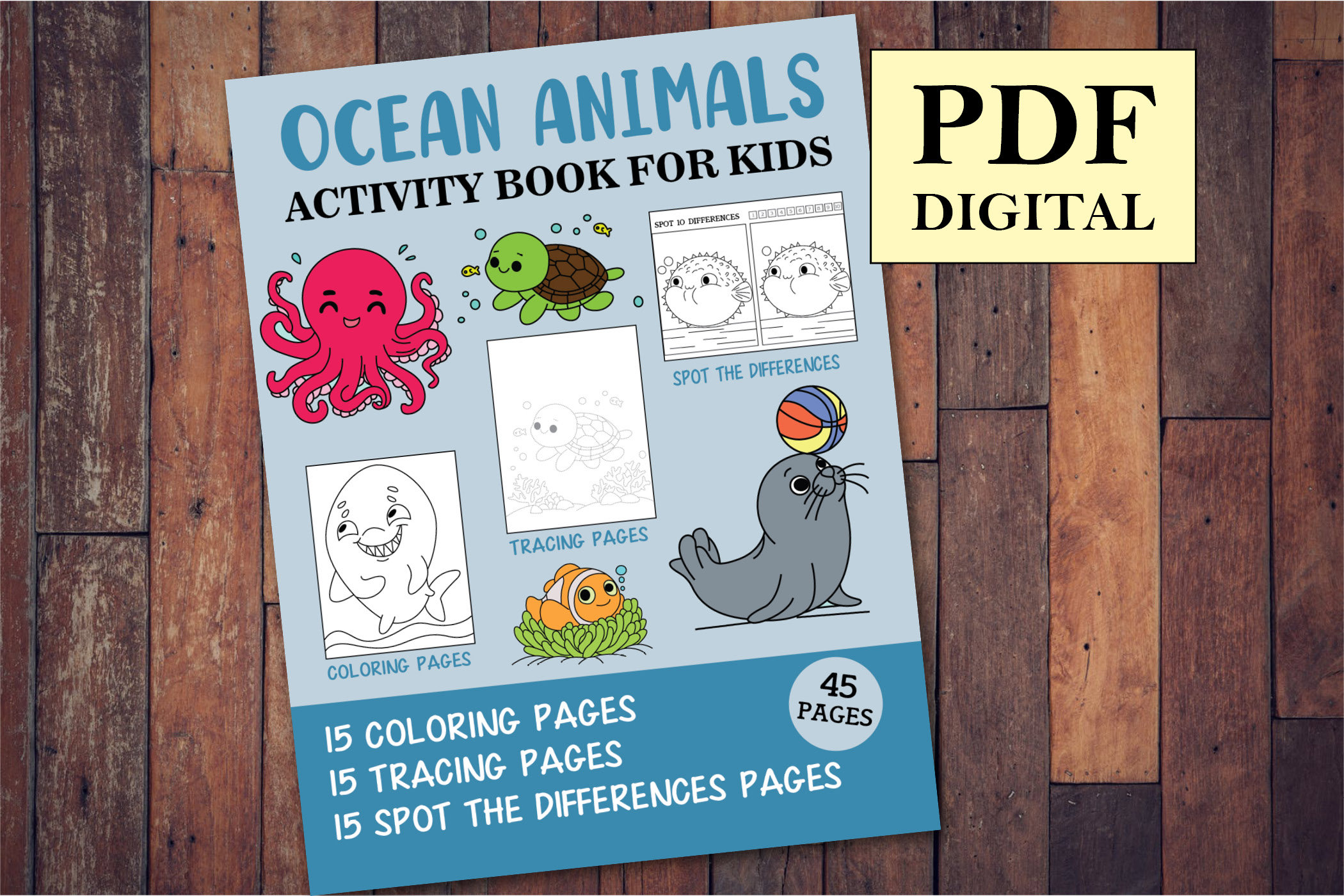 Ocean Animals Activity Book for Kids - Coloring, Tracing and Spot the Difference Pages
