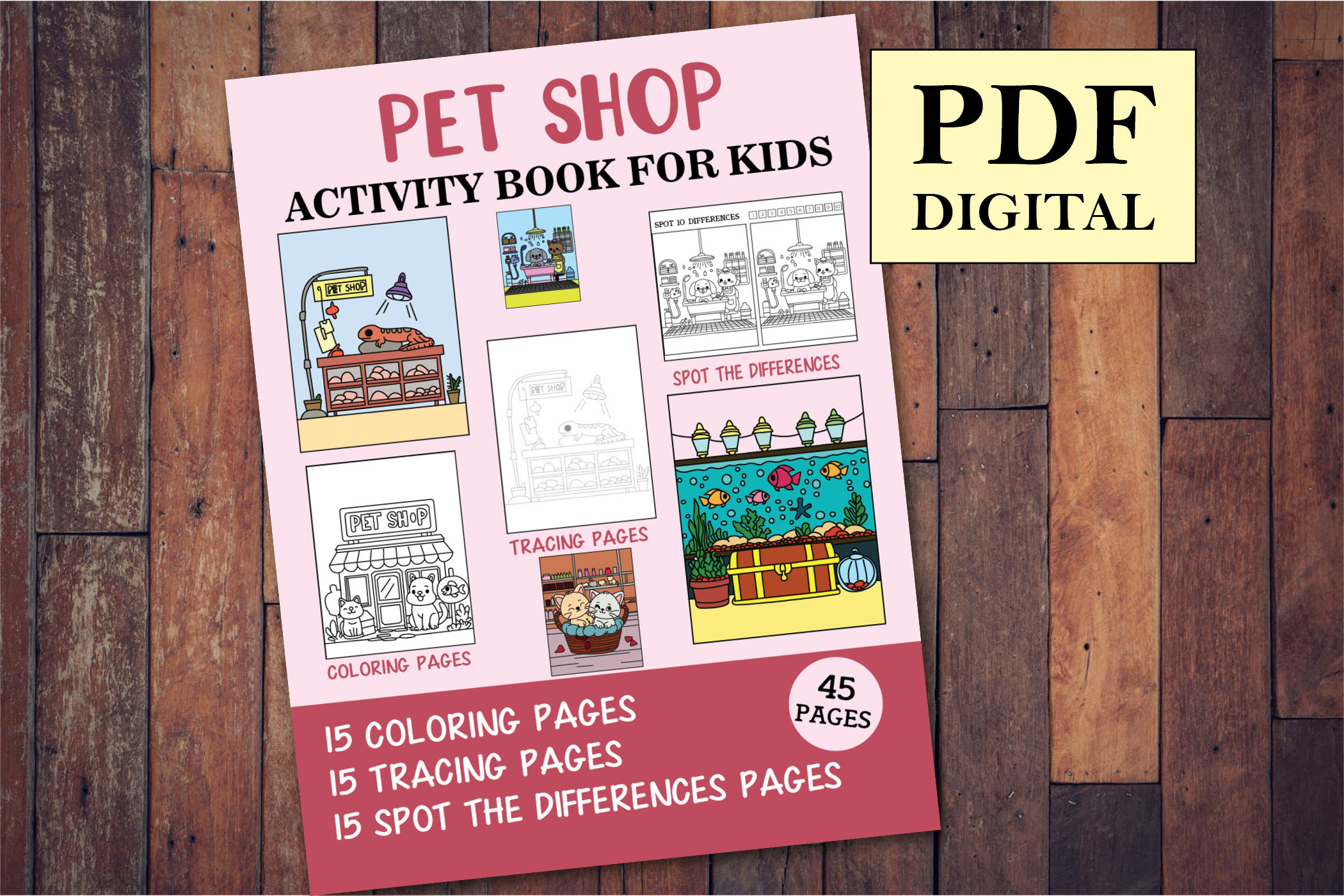 Pet Shop Activity Book for Kids - Coloring, Tracing and Spot the Difference Pages