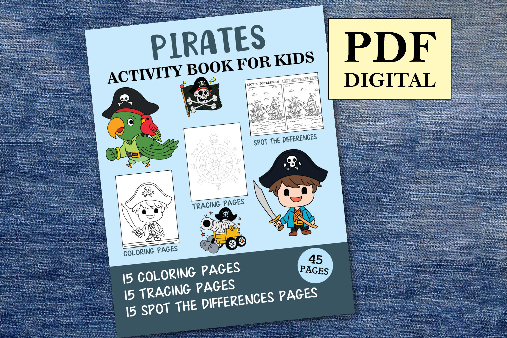 Pirates Activity Book for Kids - Coloring, Tracing and Spot the Difference Pages