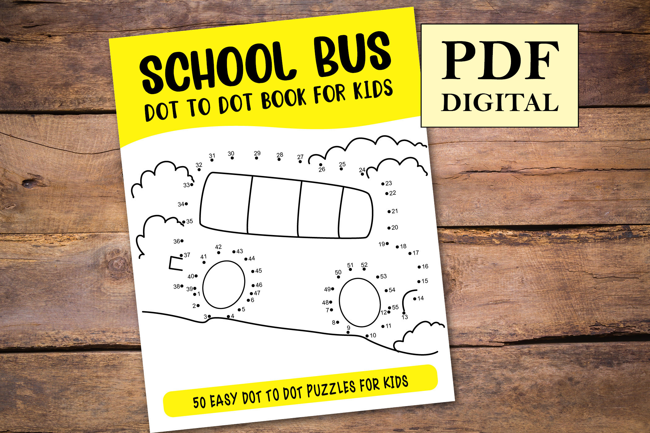 This School Bus Dot to Dot Book contains 50 Dot Puzzles for kids, each page is uniquely crafted to be suitable for kids of all age groups.