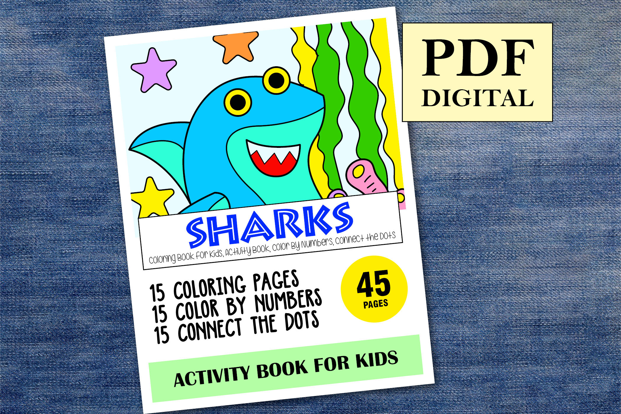 Sharks Activity Book for Kids - Coloring, Connect the Dots, and Color By Numbers Pages