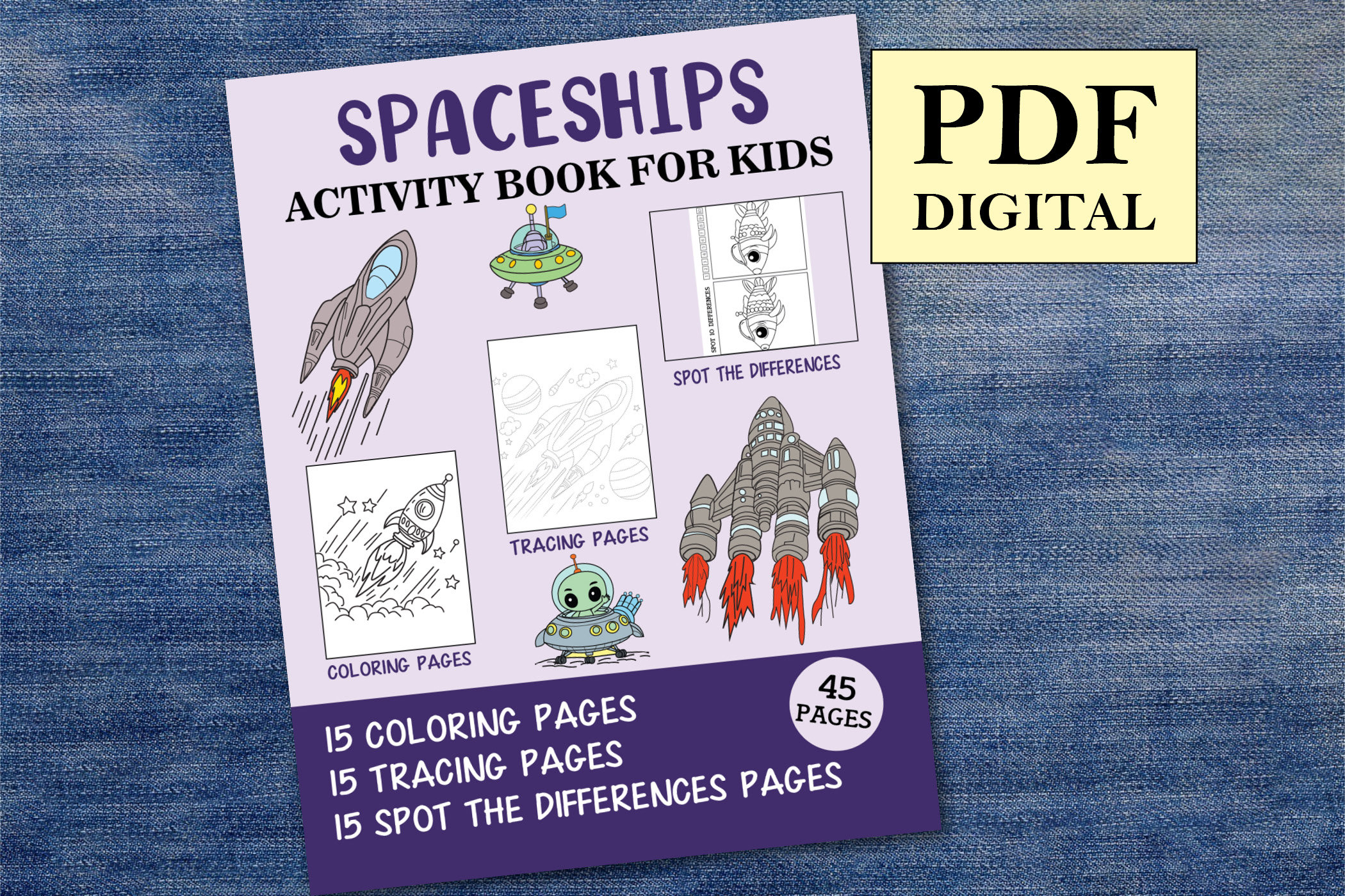 Your kids are going to love this Spaceships Activity Book with 45 pages of various activities to keep your child engaged and entertained for hours.