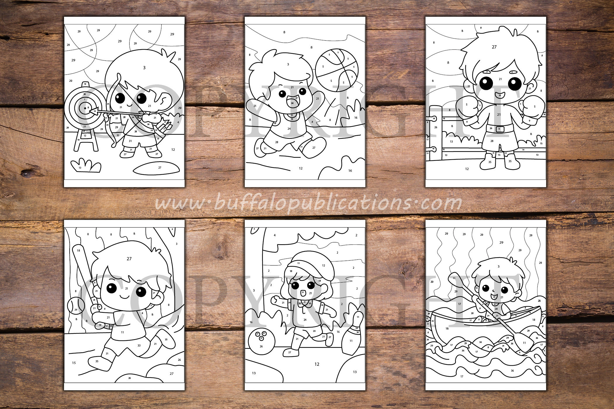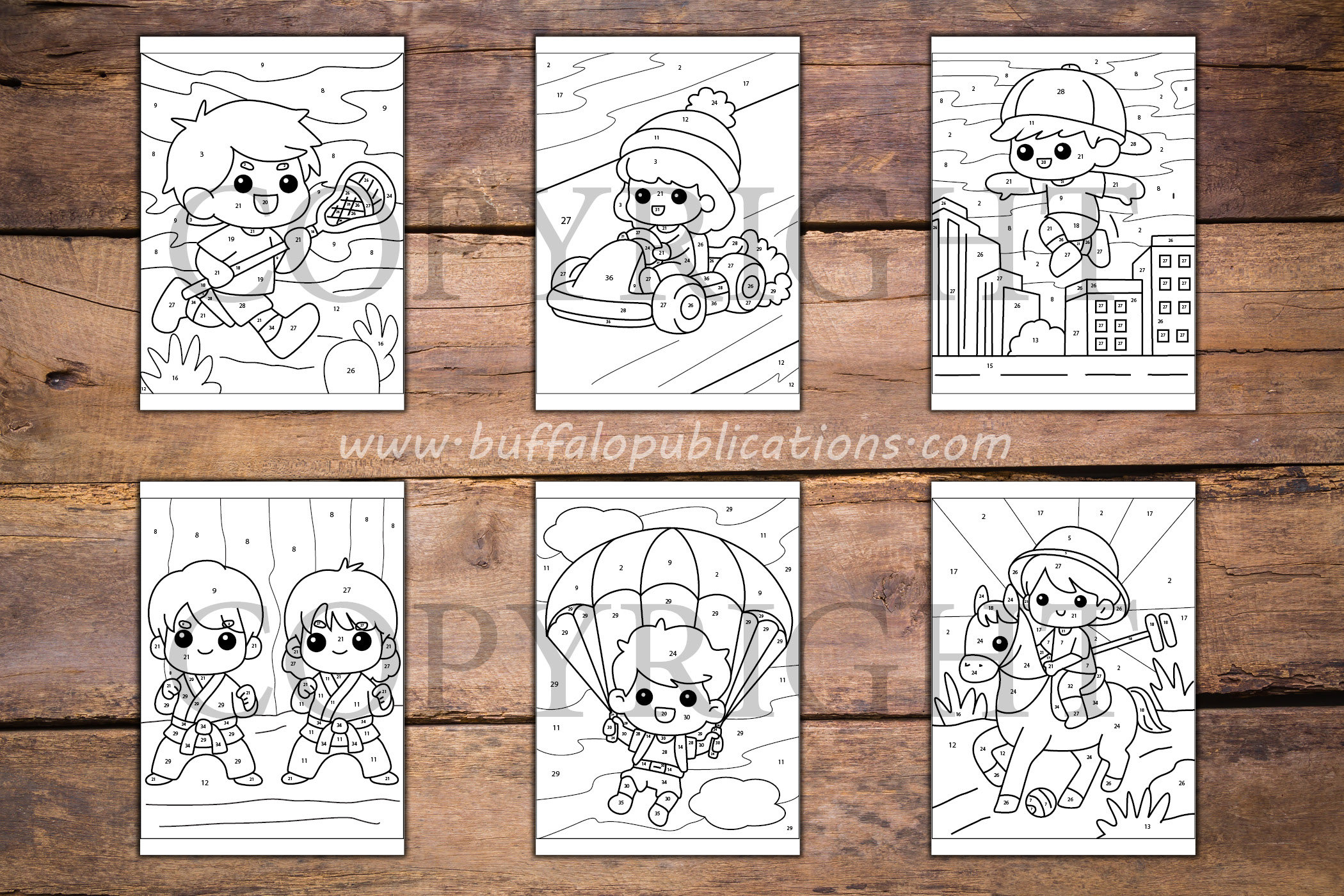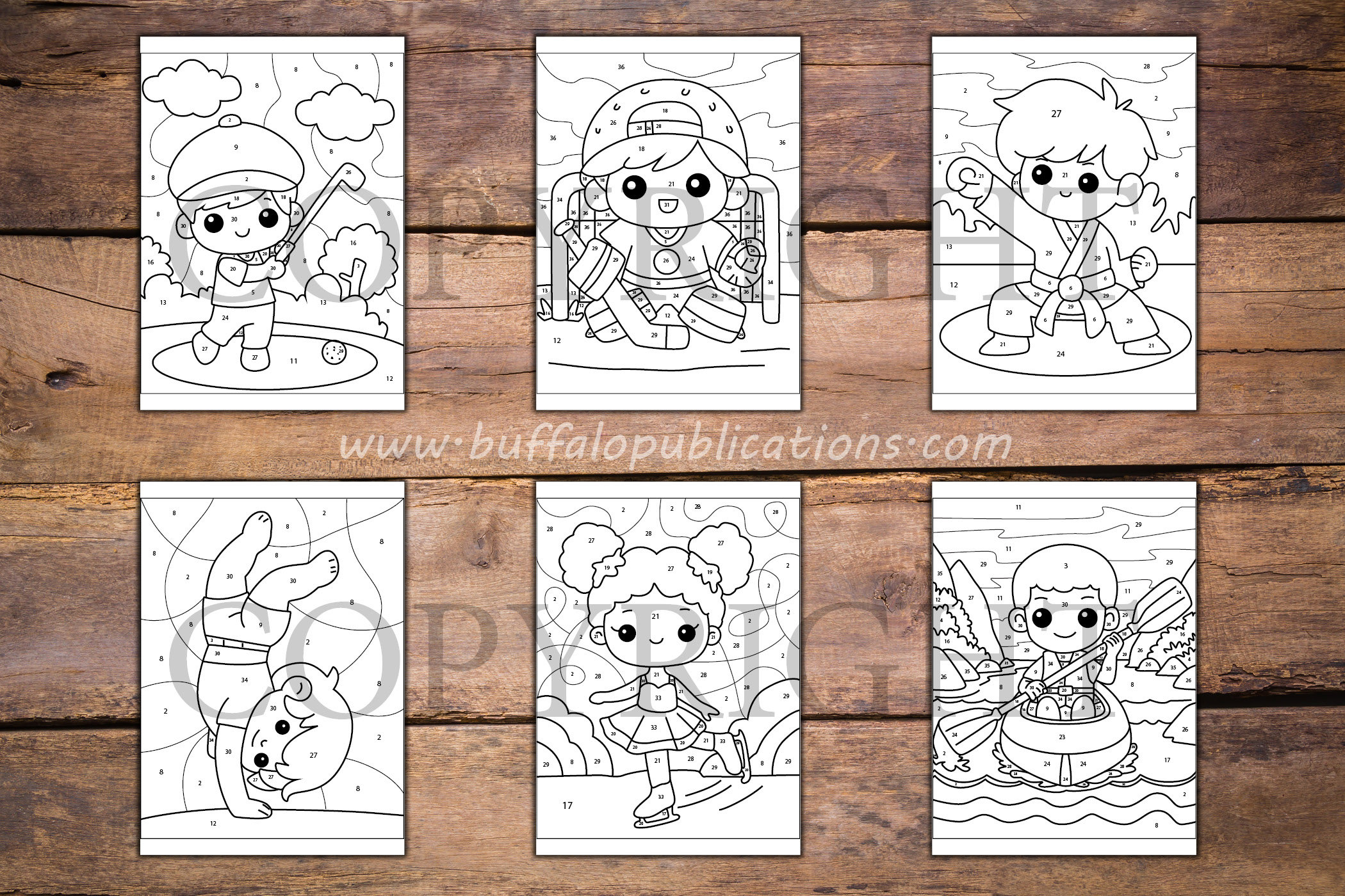 Your kids are going to love this Sports Coloring Book with 50 Color By Number pages to keep your child engaged and entertained for hours.
