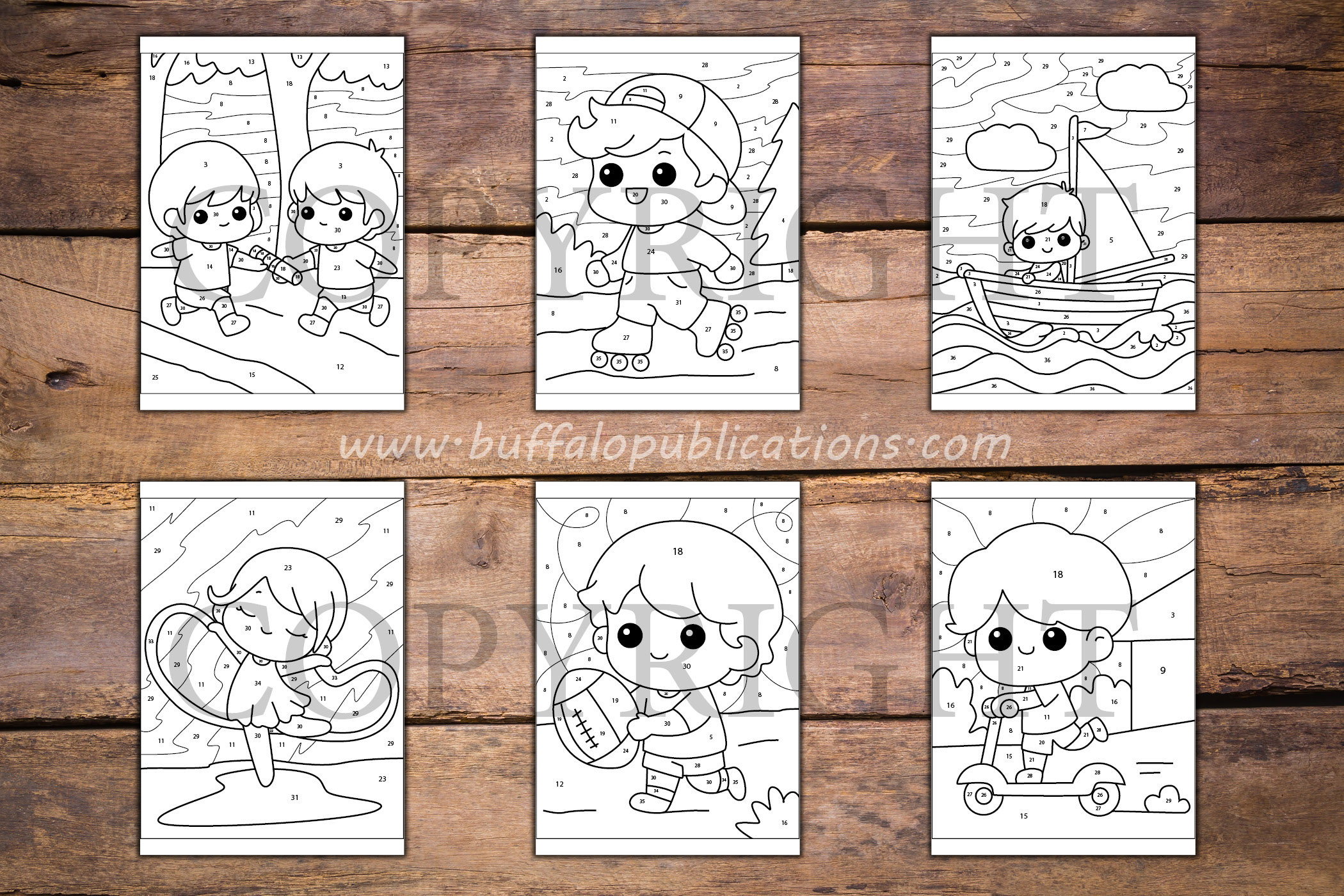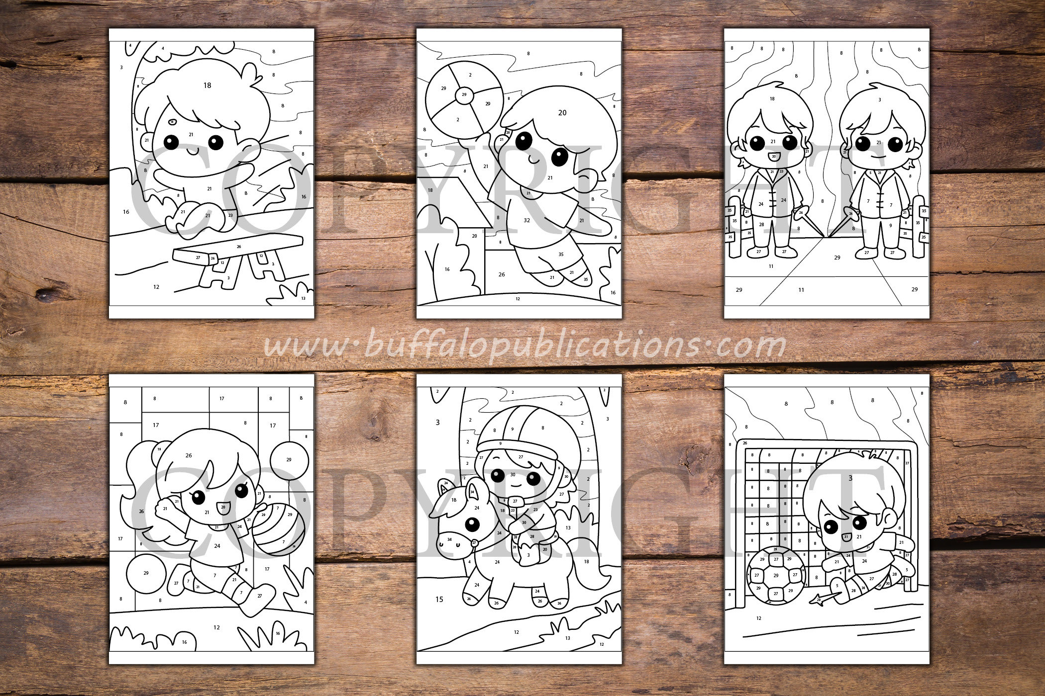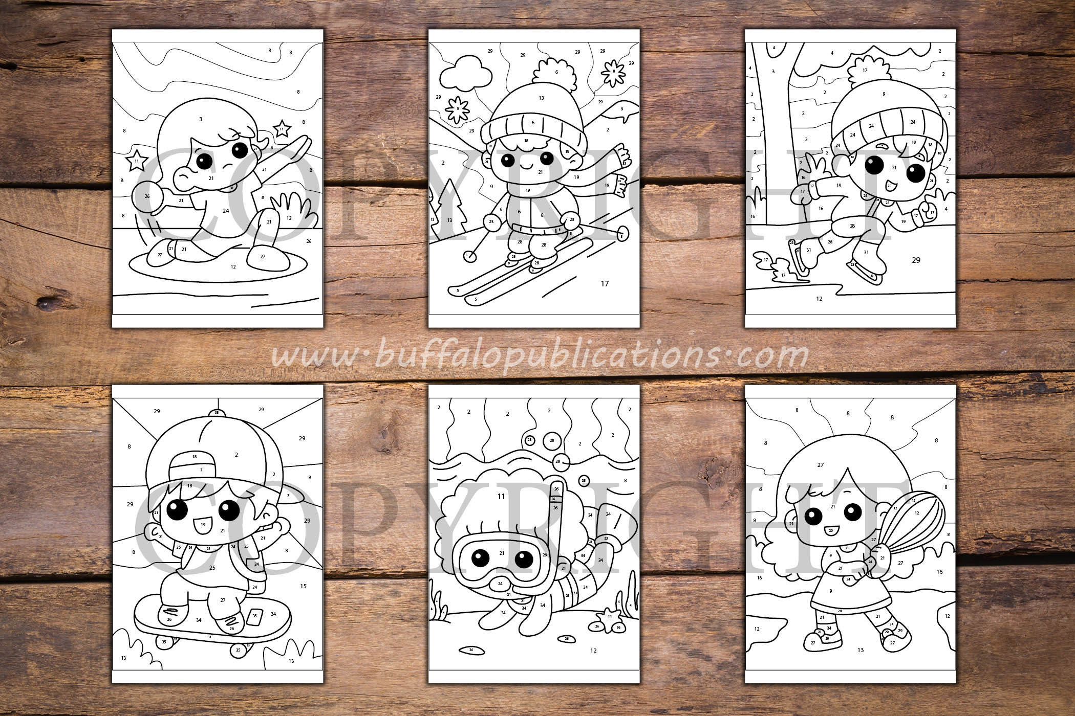 Your kids are going to love this Sports Coloring Book with 50 Color By Number pages to keep your child engaged and entertained for hours.