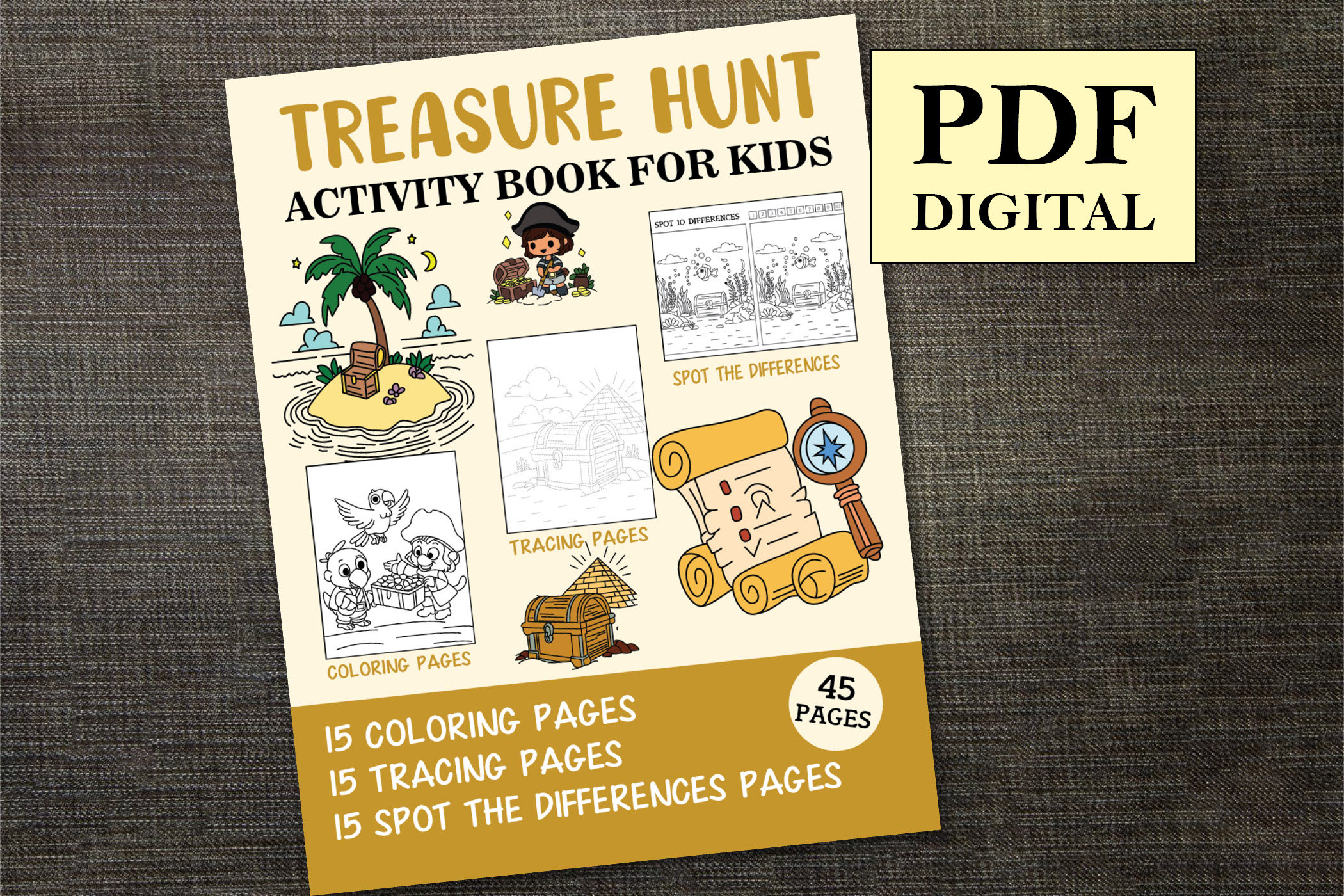 Your kids are going to love this Treasure Hunt Activity Book with 45 pages of various activities to keep your child engaged and entertained for hours.