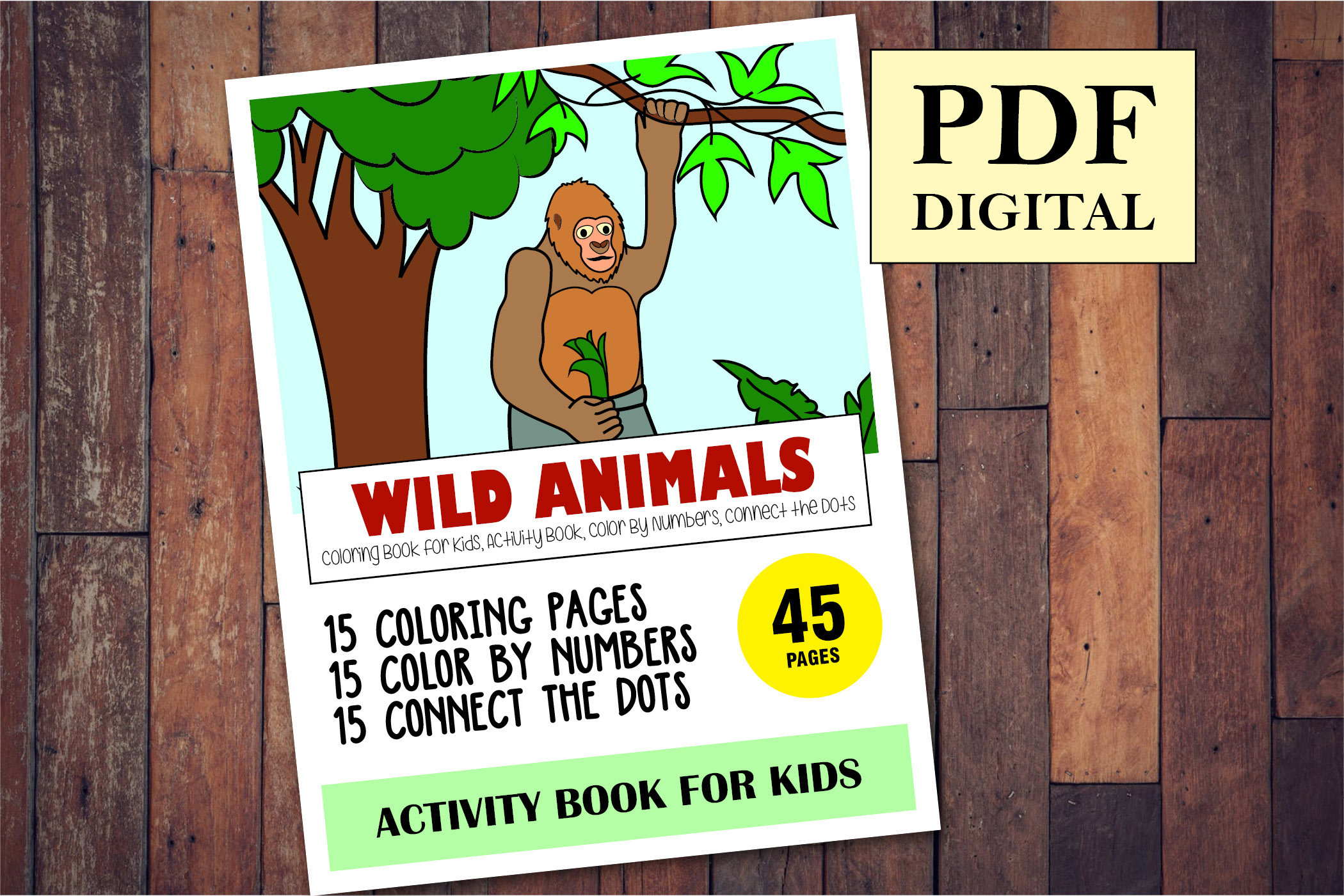 Your kids are going to love this Wild Animals Activity Book with 45 pages of various activities to keep your child engaged and entertained for hours.